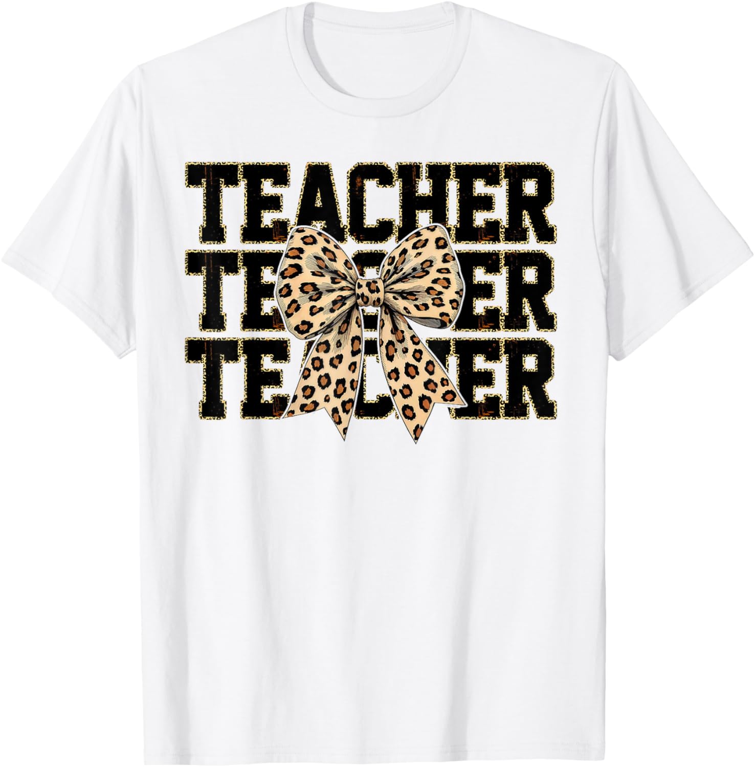 Coquette Bow Leopard Print Teacher Happy First Day Back To School Tee by TeeBrew