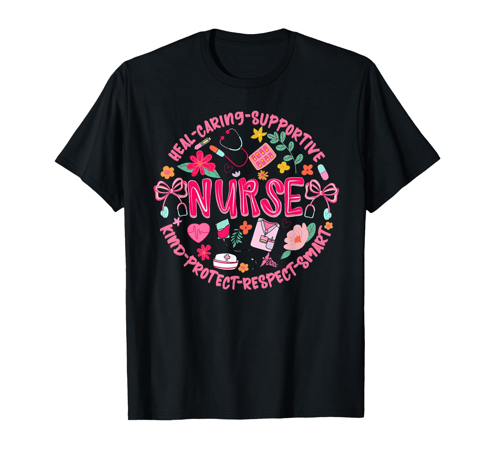 Coquette Nurse Stethoscope Bow Cute Nurse Boho Floral Women T-Shirt