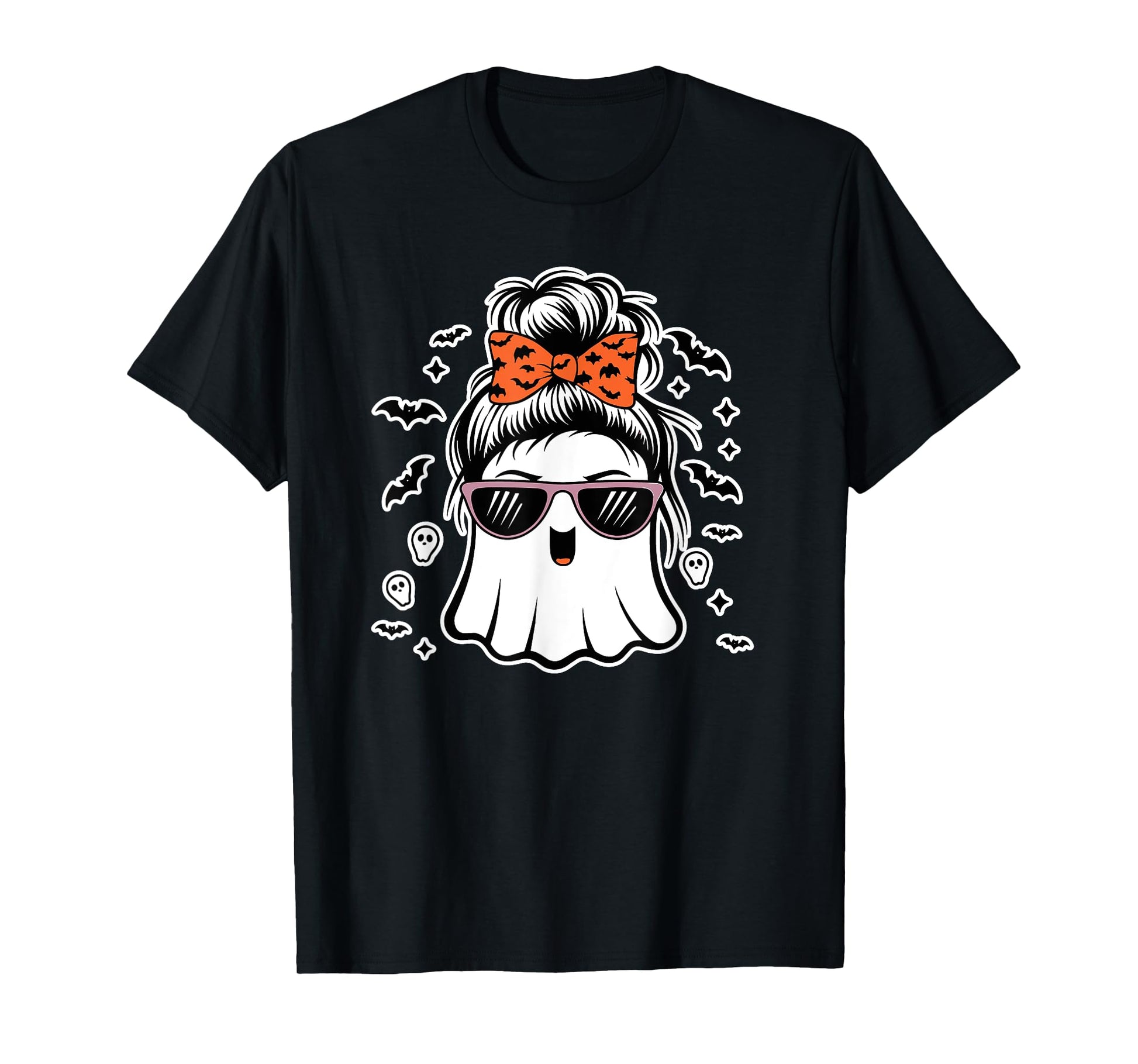 Cute Ghost Messy Bun Mom Halloween Messy Hair Bun Moms Life T-Shirt