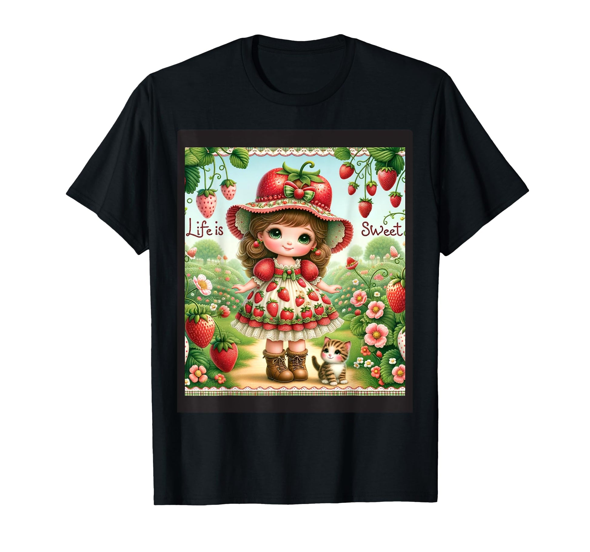 Cute Life Is Sweet Strawberry Cake Vintage Berry Garden T-Shirt