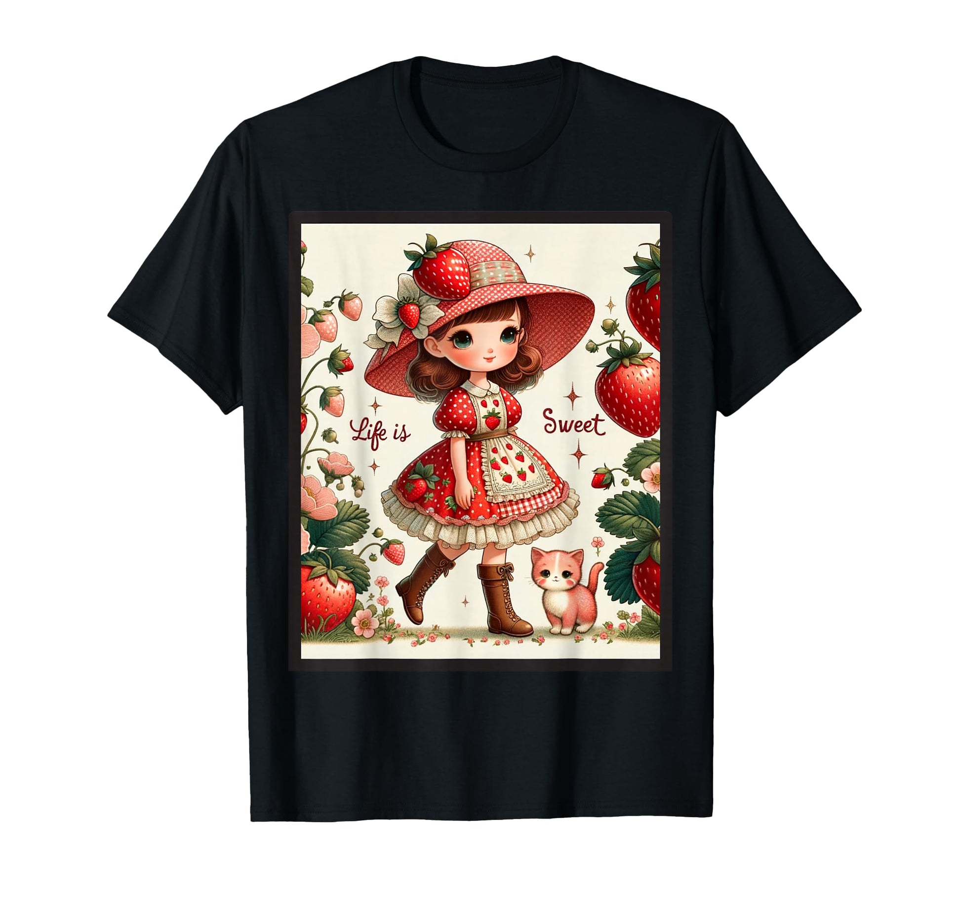 Cute Life Is Sweet Strawberry Cake Vintage Berry Garden T-Shirt