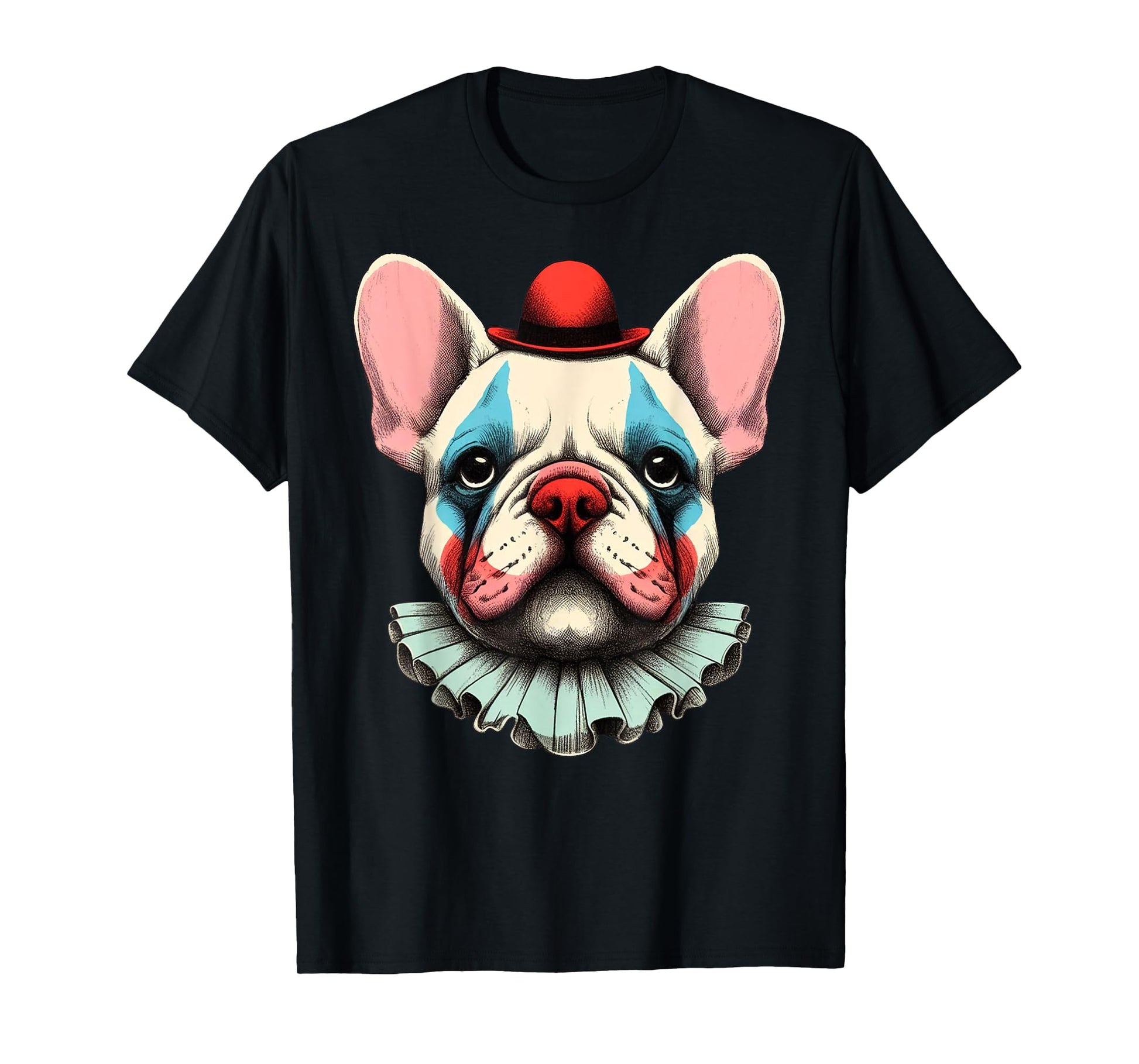 Cute Spooky French Bulldog Clown Halloween Funny Frenchie Men Women Kids T-Shirt