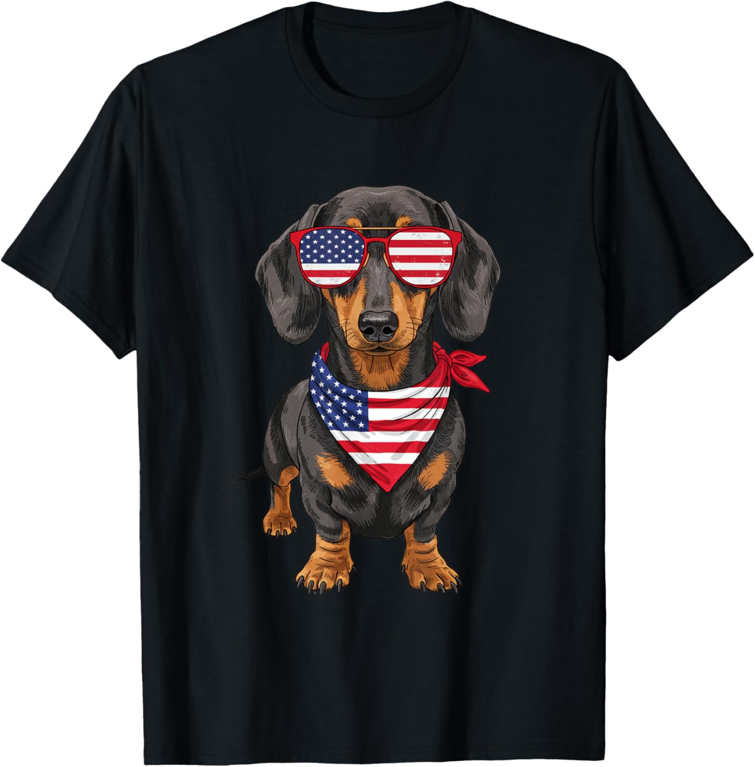 Dachshund Wiener USA US Flag 4th of July America Cute Dog T-Shirt
