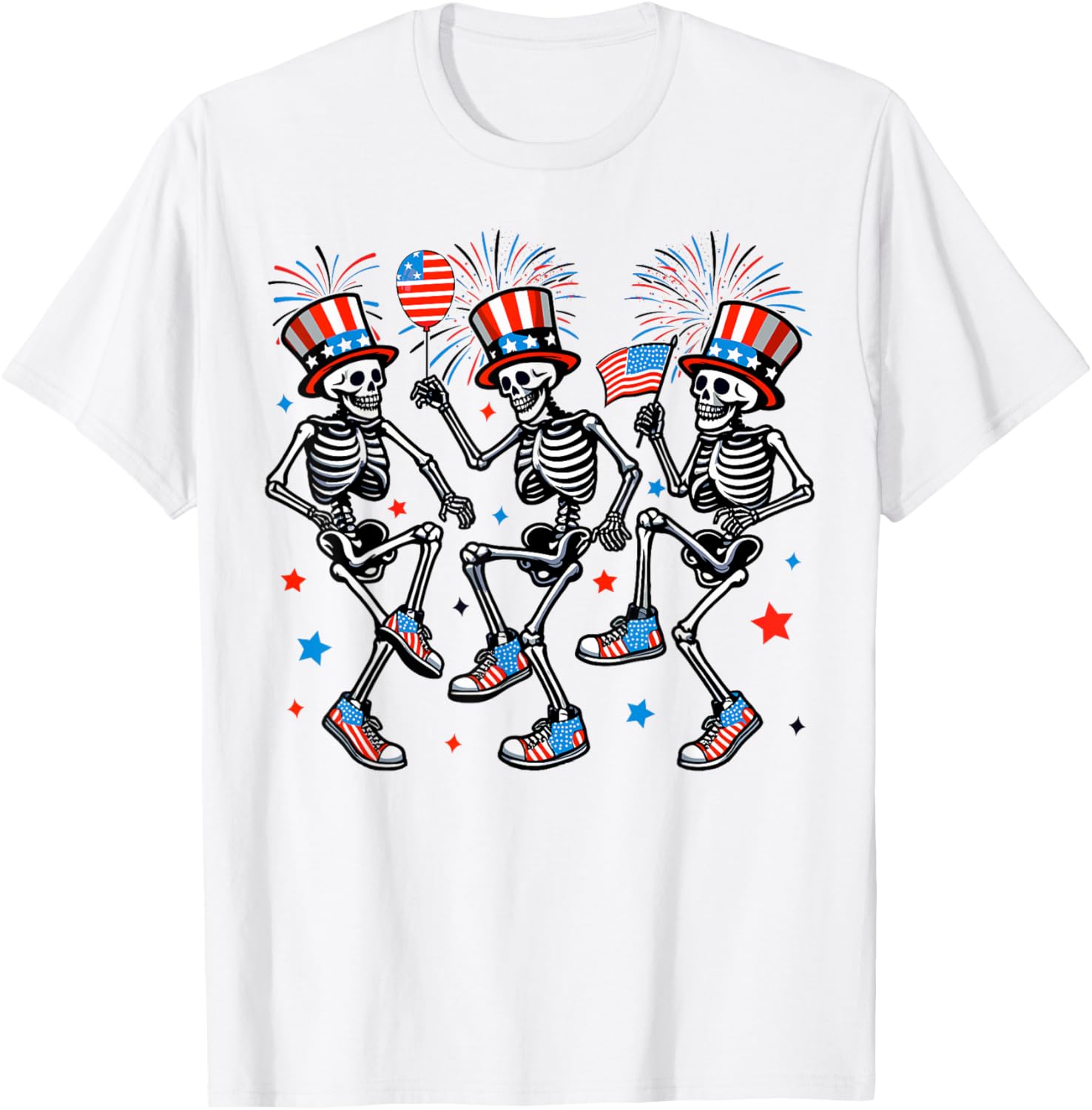 Dancing Skeleton Funny Independence Day American 4th Of July T-Shirt