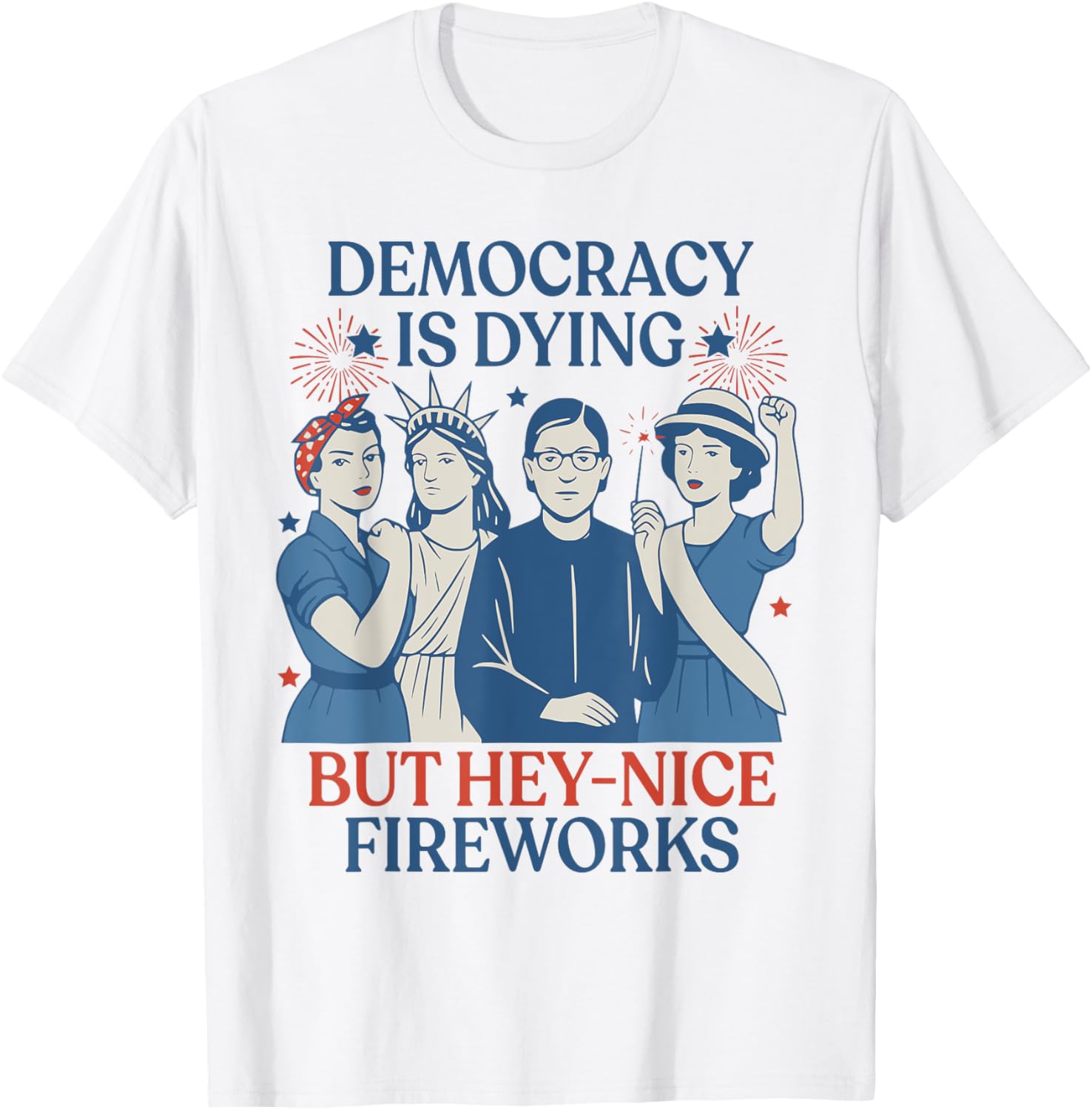 Funny Democracy Is Dying But Hey Nice Fireworks 4th Of July T-Shirt