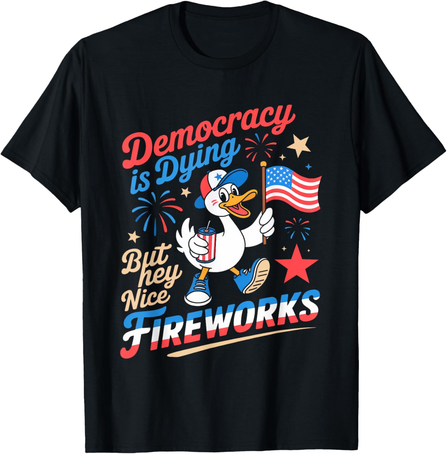 Democracy Is Dying But Hey Nice Fireworks Duck 4th Of July T-shirt