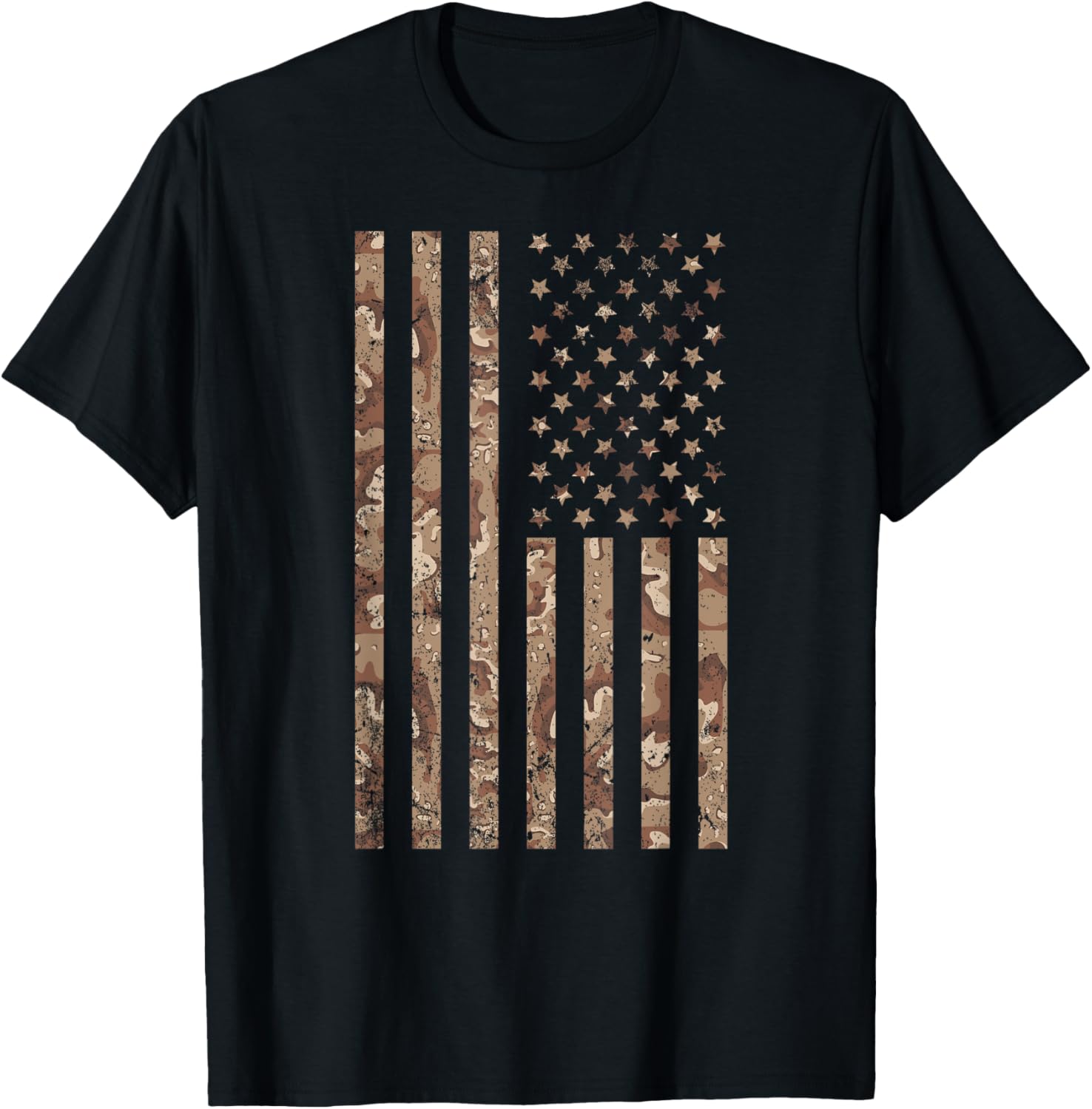 Desert Camo American Flag Military, Tactical Camouflage USA T-Shirt