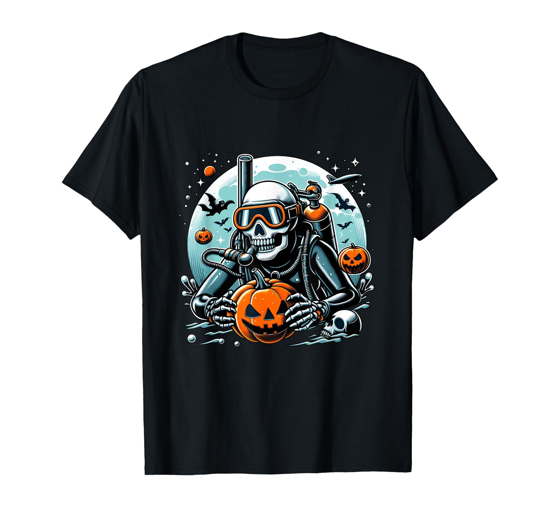 Dive Skeleton Scuba Diving Player Halloween Diver Ocean Life T-Shirt