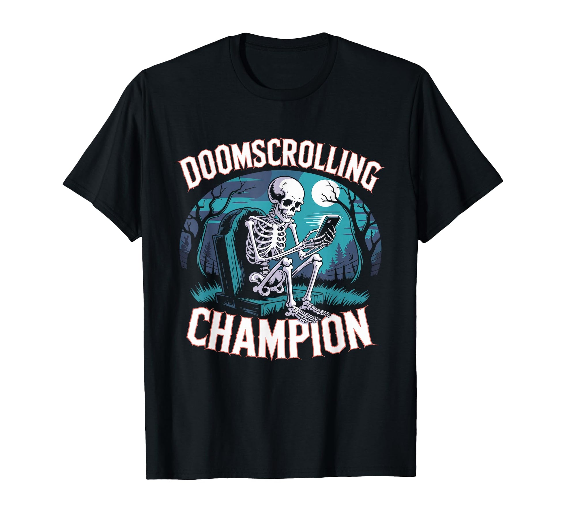 Doomscrolling Champion Skeleton Tombstone Doom Scroll Design T-Shirt