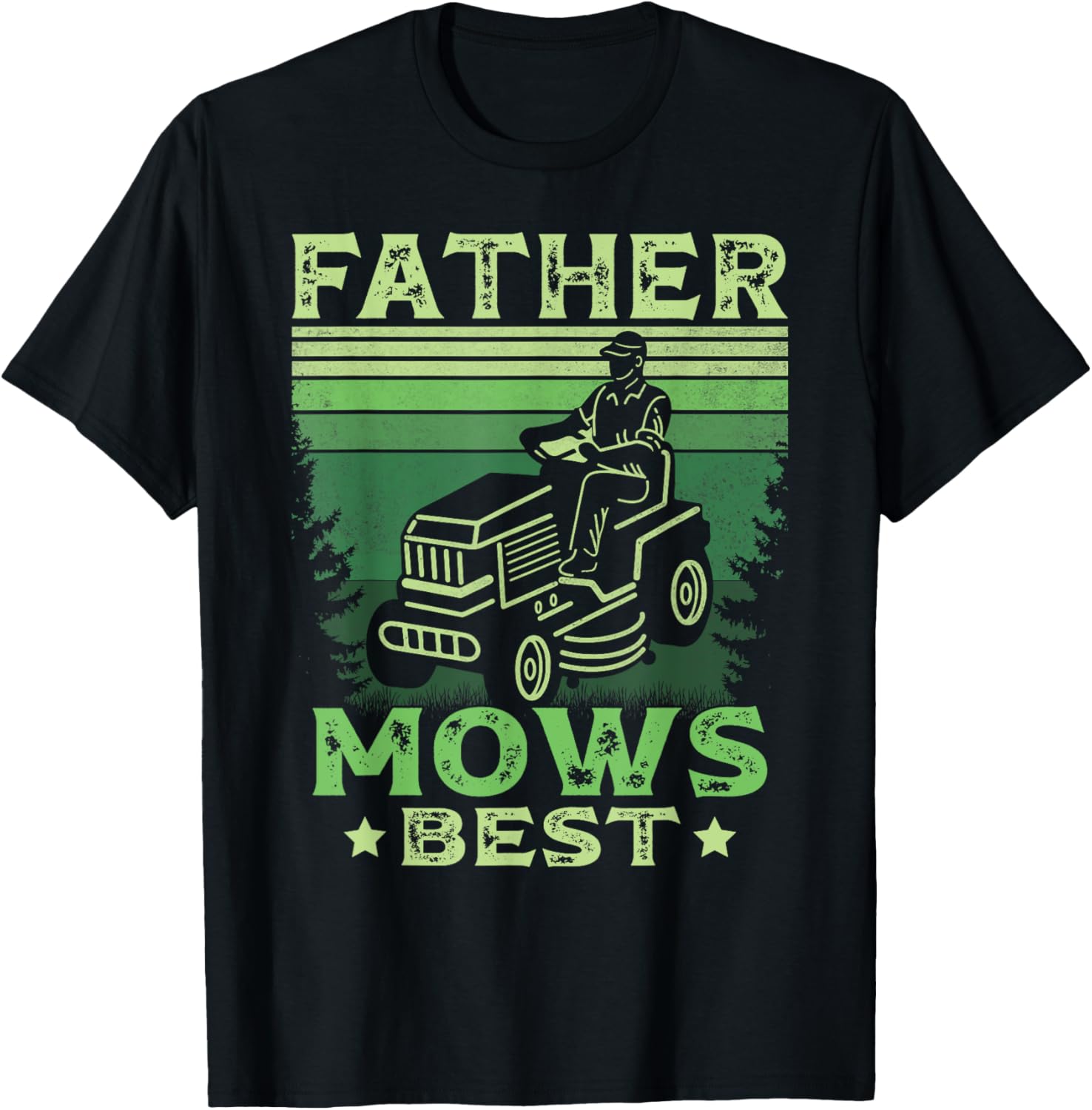 Father Mows Best Retro Mowing Dad Riding Mower Fathers Day T-Shirt