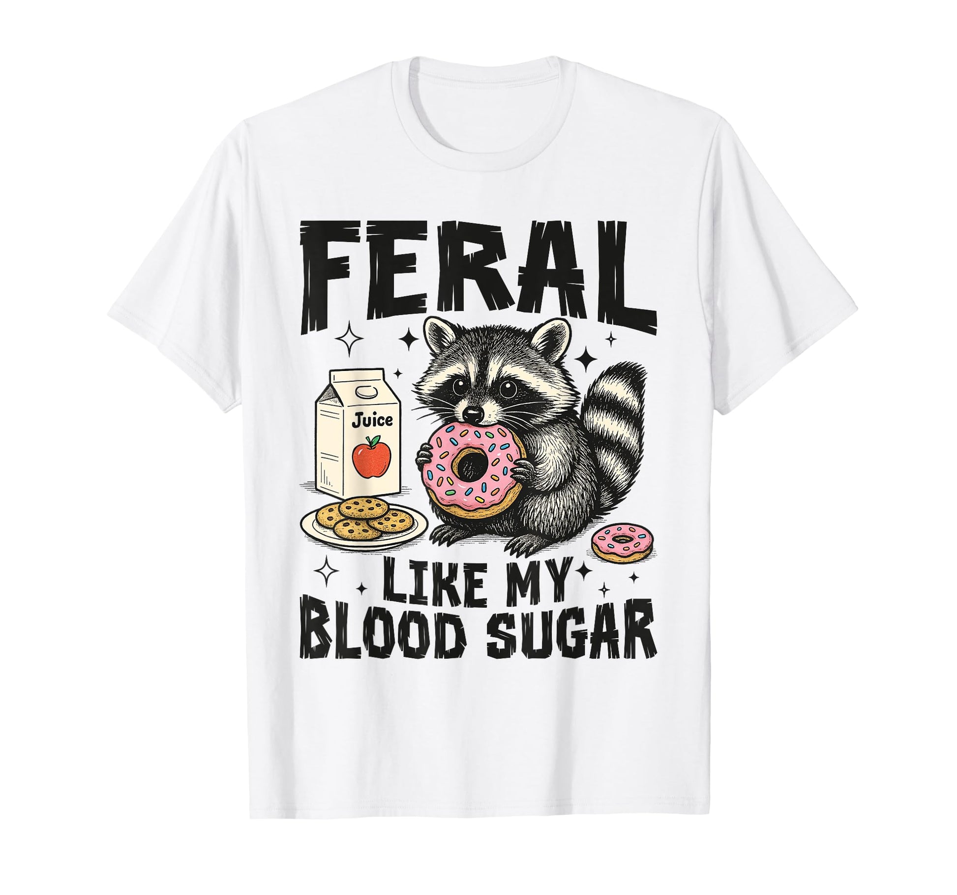 Feral Like My Blood Sugar Funny Diabetes Raccoon Awareness T-Shirt