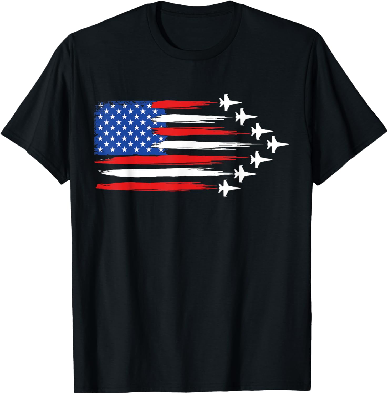Fighter Jet Airplane American Flag Fighter Jets 4th of July T-Shirt