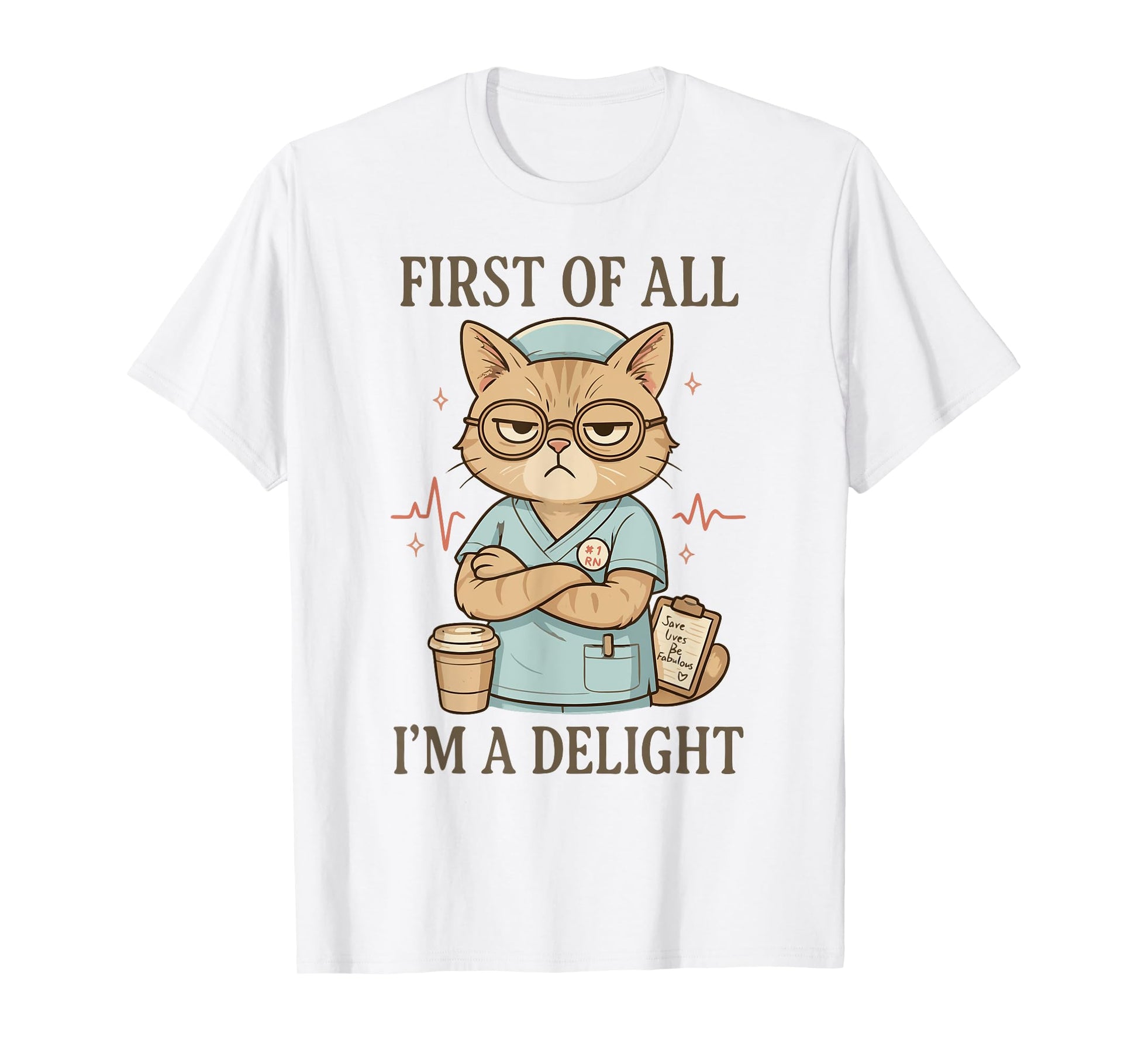 First of All I'm a Delight Funny Grumpy Nurse Cat Cute RN T-Shirt