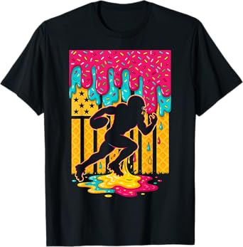 Football Ice Cream Drip Boys Football Player American Flag T-Shirt
