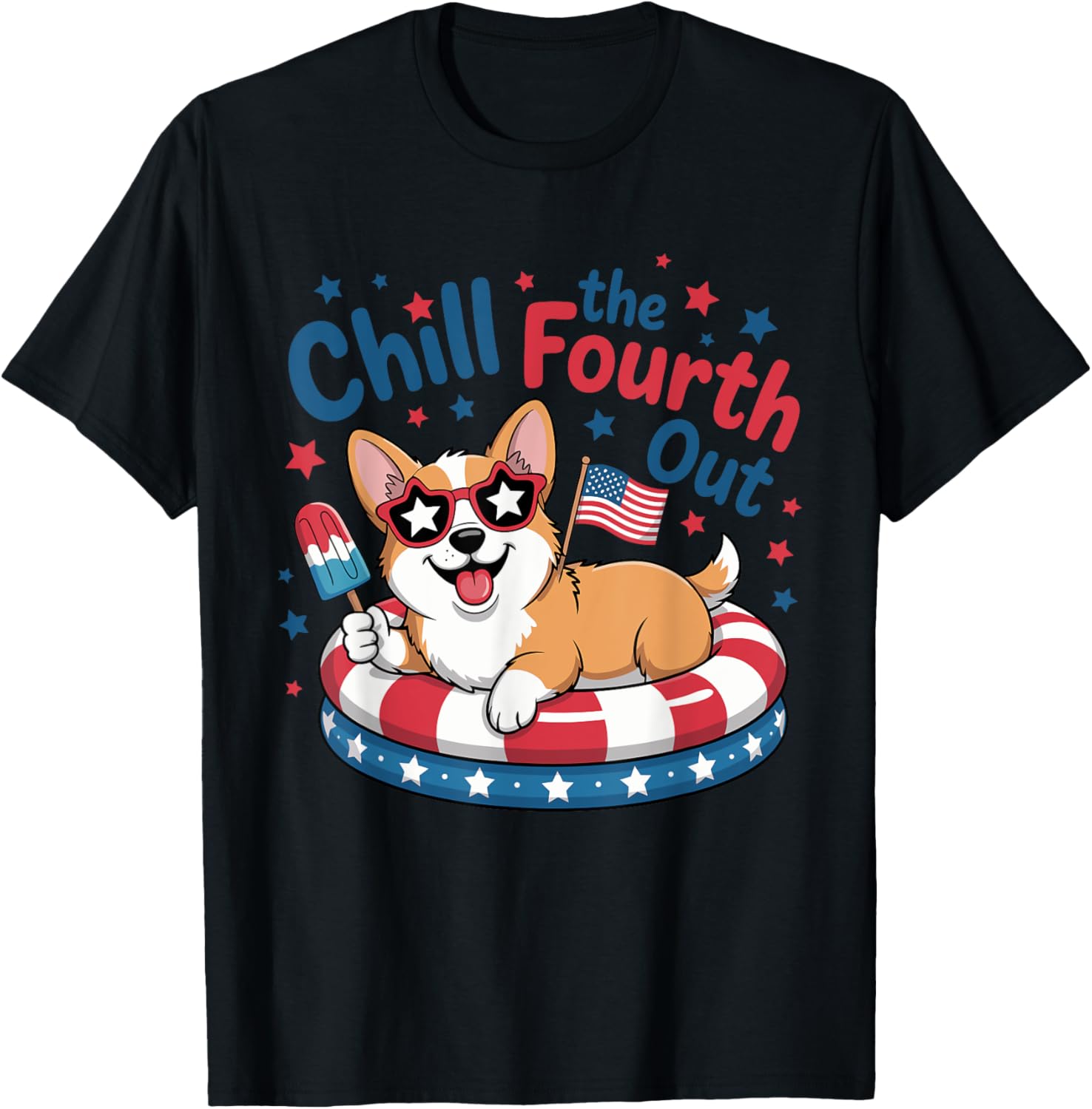 Funny Chill The Fourth Out Cute Corgi Patriotic 4th Of July T-shirt