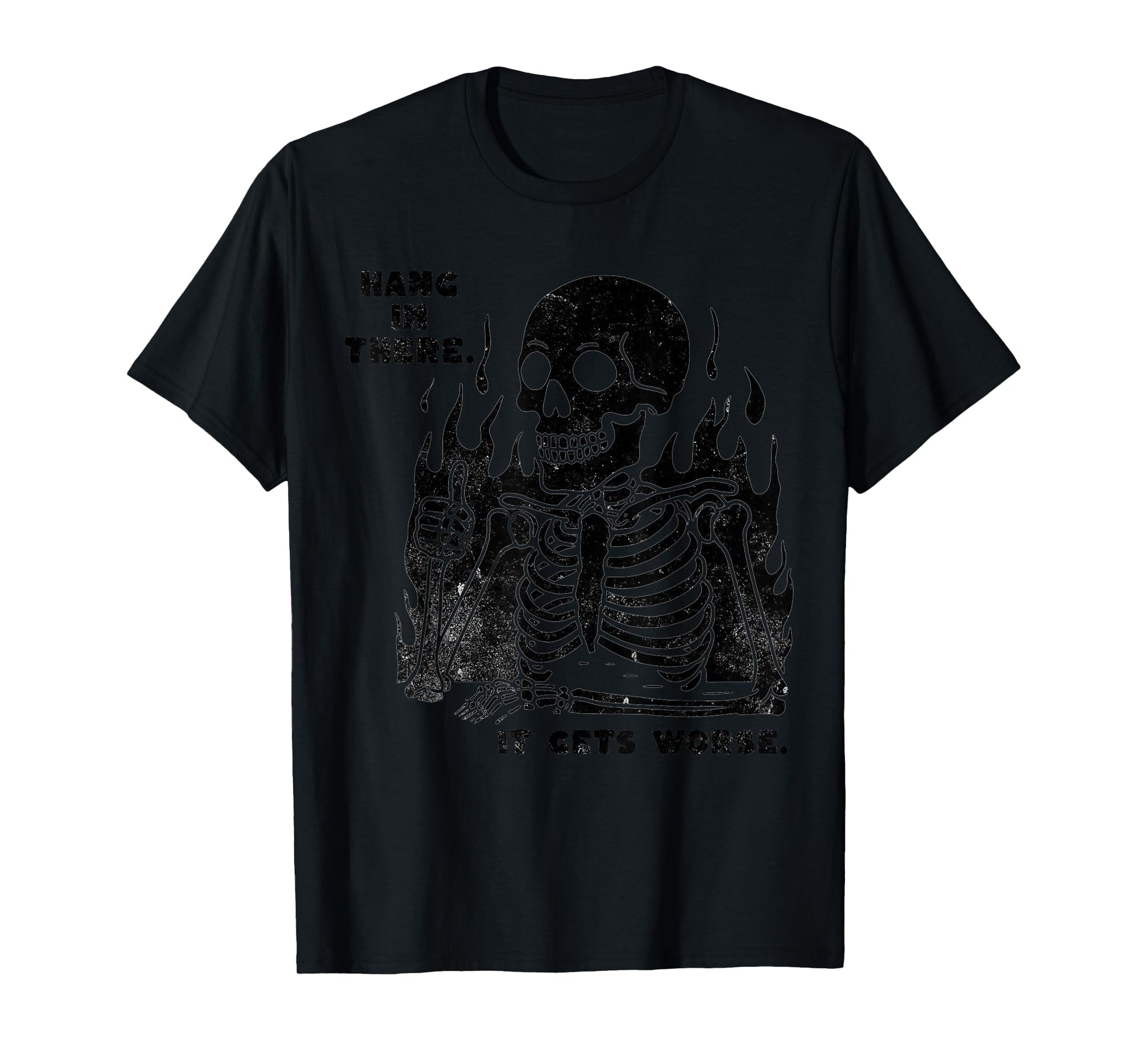 Funny Hang in There It Gets Worse Existential Dread Skeleton T-Shirt
