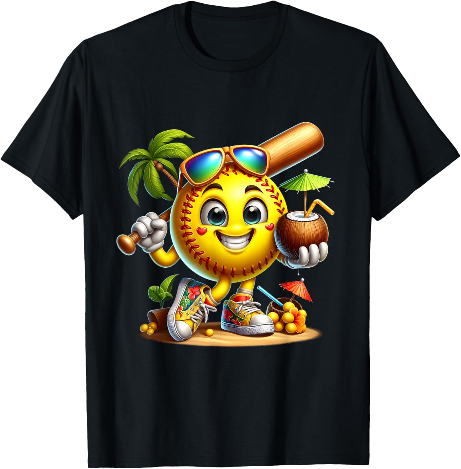 Funny Hawaii Softball Ball Hawaiian Tropical Summer Vacation T-Shirt