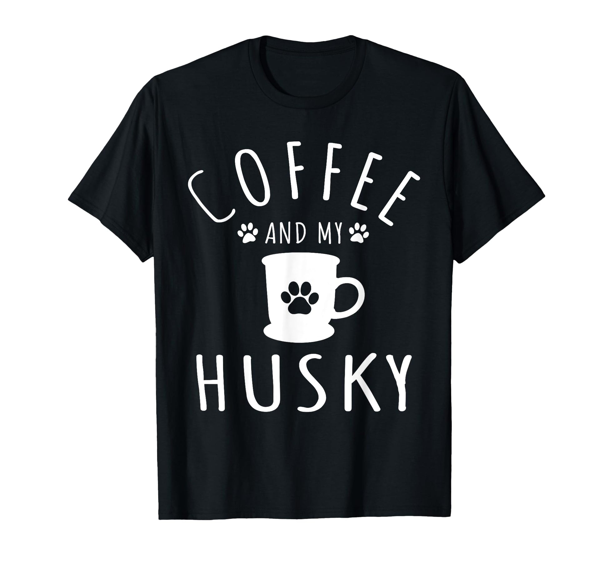 Funny Husky Mama T Shirts Dog Lover Coffee And My Husky Mom T-Shirt