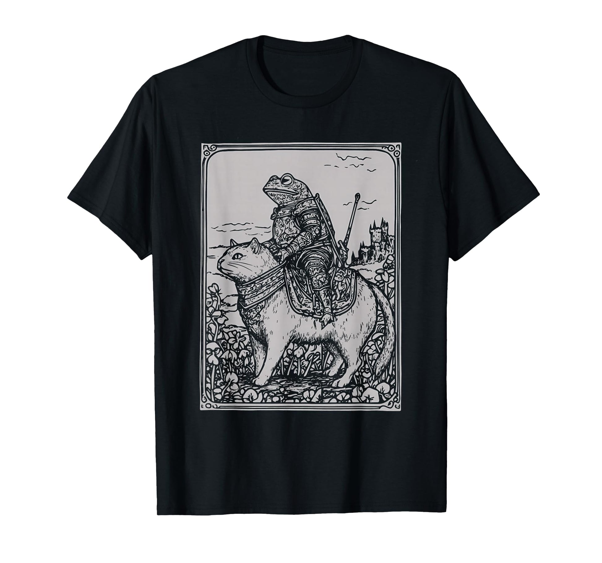 Funny Medieval Frog On Cat Weird Stuff Unhinged Cat Memes T-Shirt