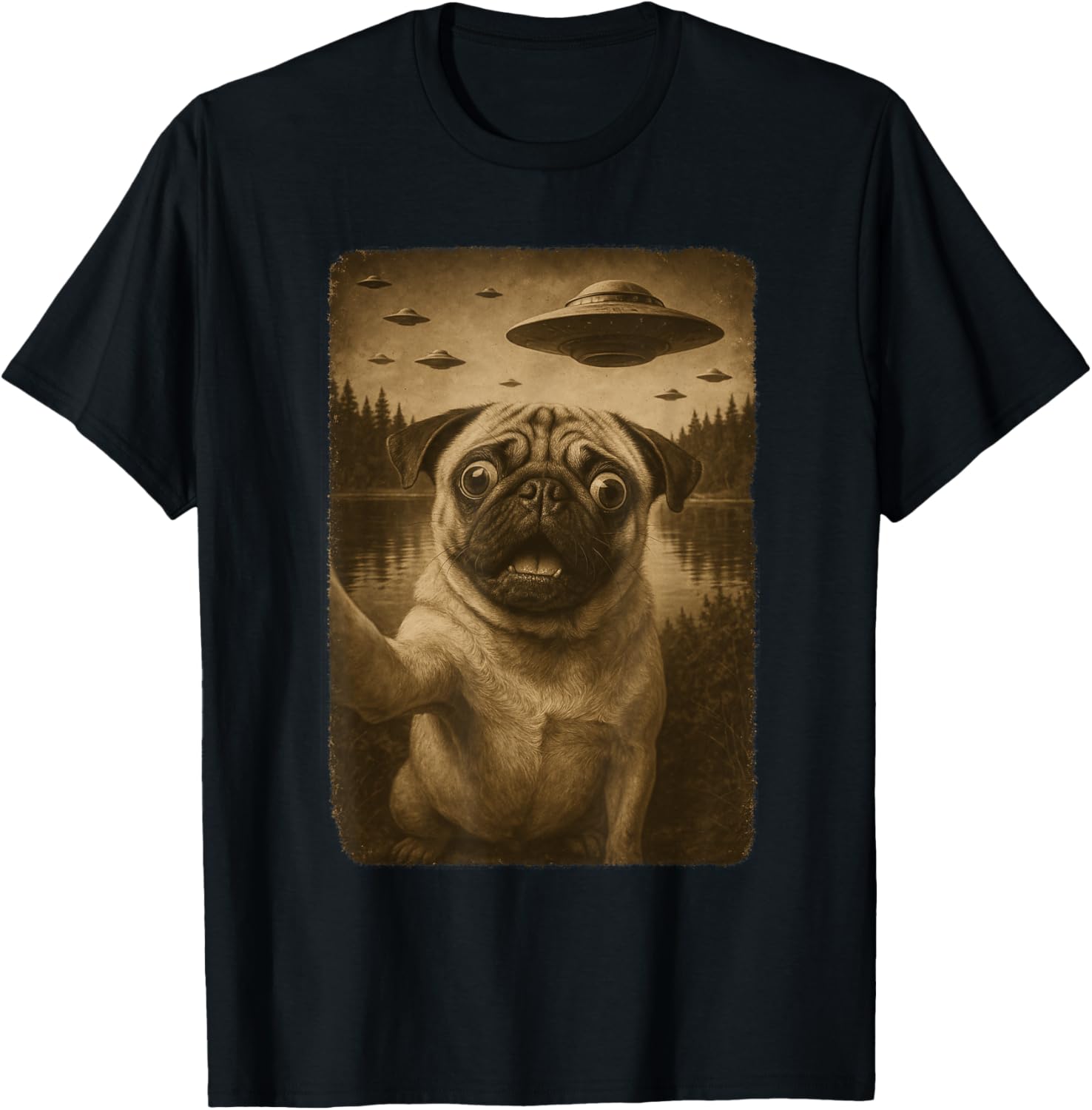Funny Pug UFO Encounter Retro Selfie Dog Lover Gift T-Shirt