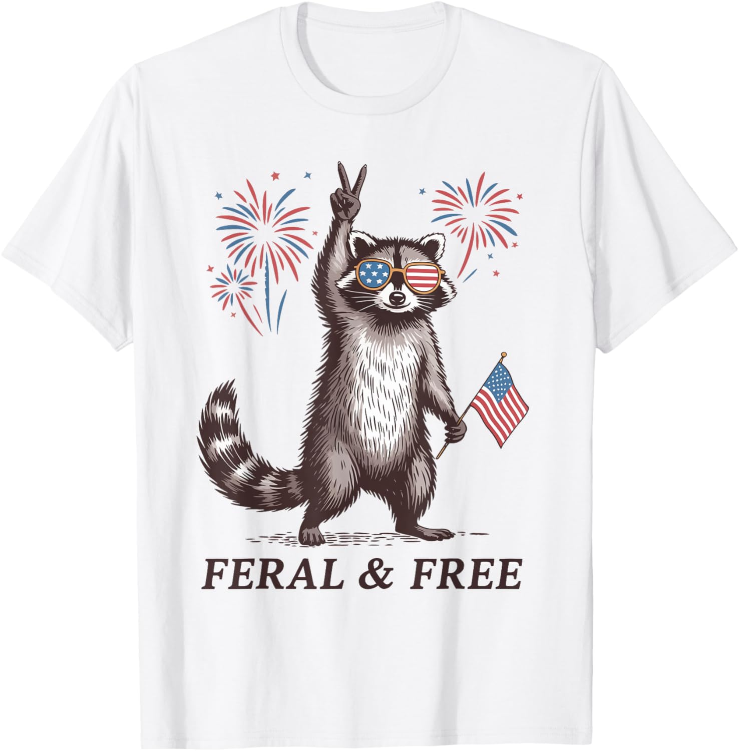 Funny Raccoon Feral And Free Usa 4th Of July Usa Flag T-shirt