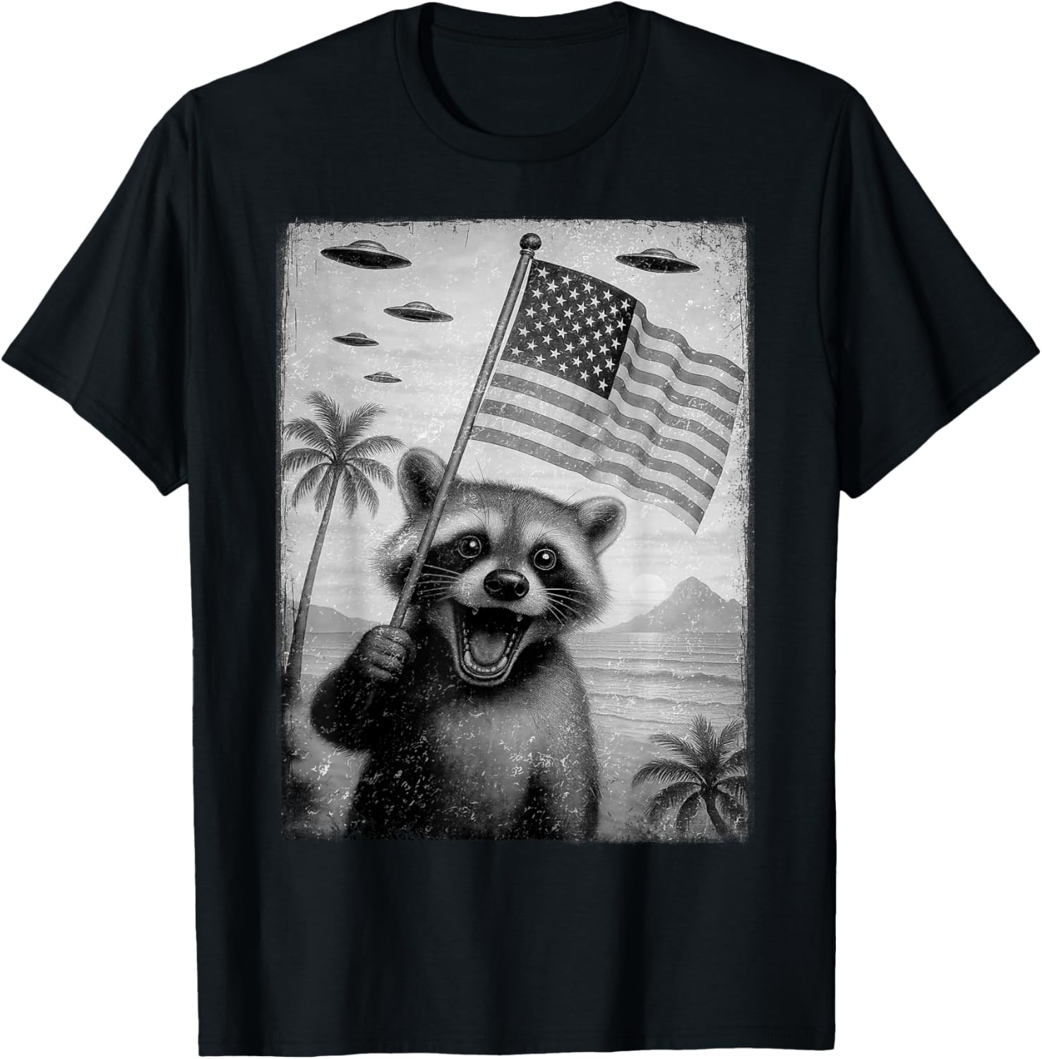 Funny Racoon Selfie With Ufos Meme 4th Of July Shirt Men Kid T-shirt