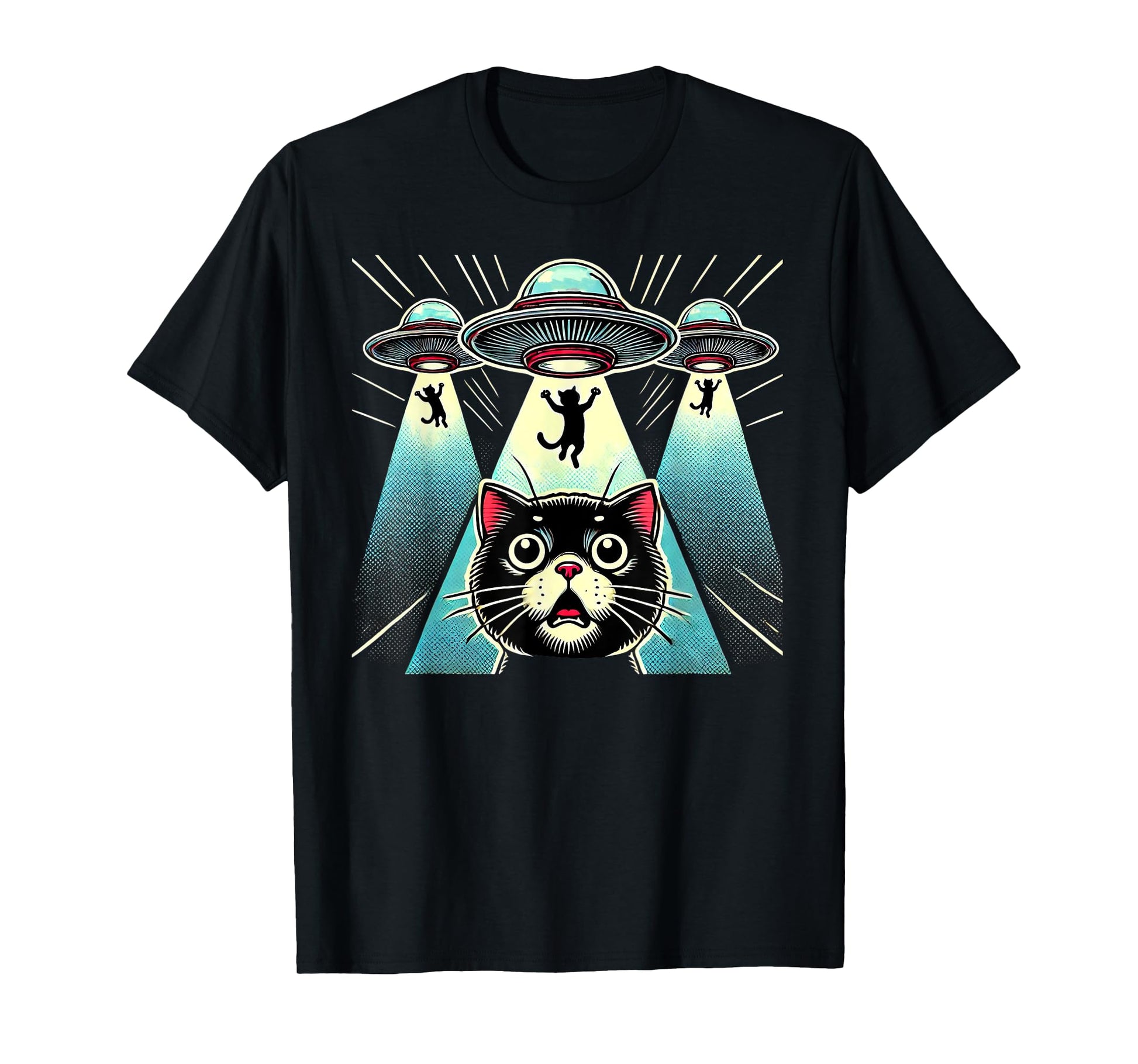 Funny UFO Cat Alien Abduction Spaceship Outerspace T-Shirt for Men Women Kids