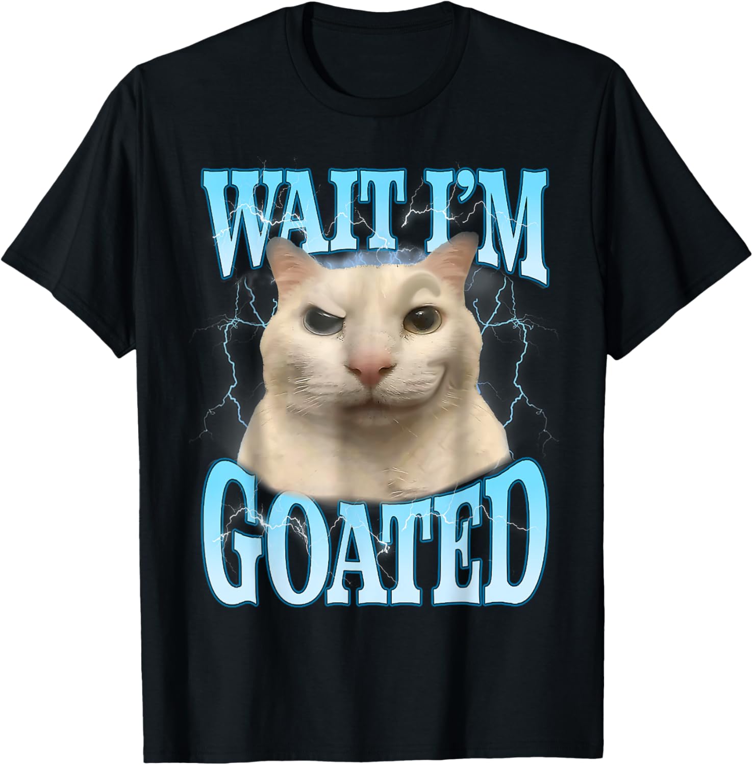 Funny Wait I'm Goated Silly Cat Meme Humor Silly Cat Saying T-Shirt