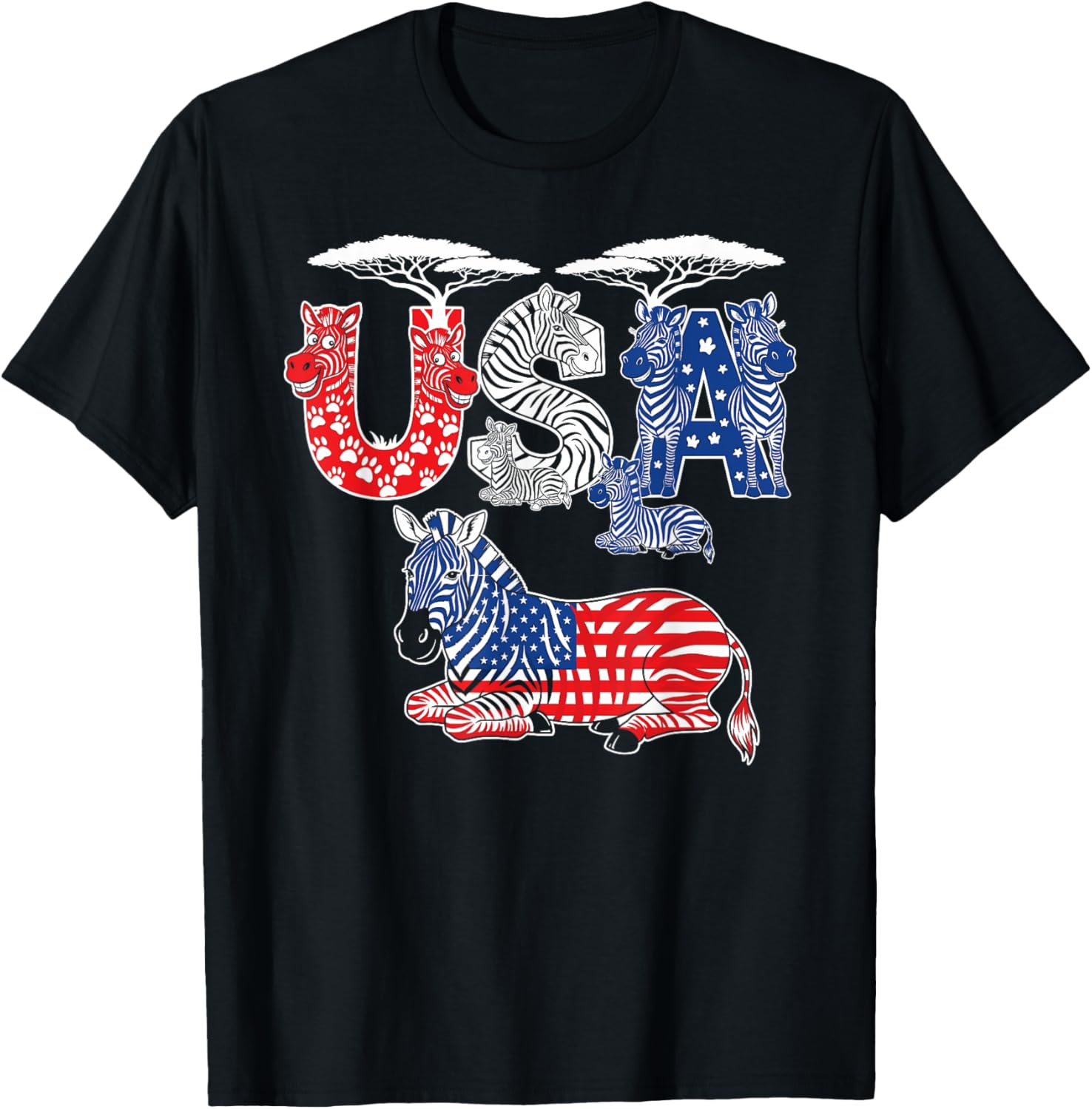 Funny Zebra American Usa Flag 4th Of July Womens Mens Kids T-shirt