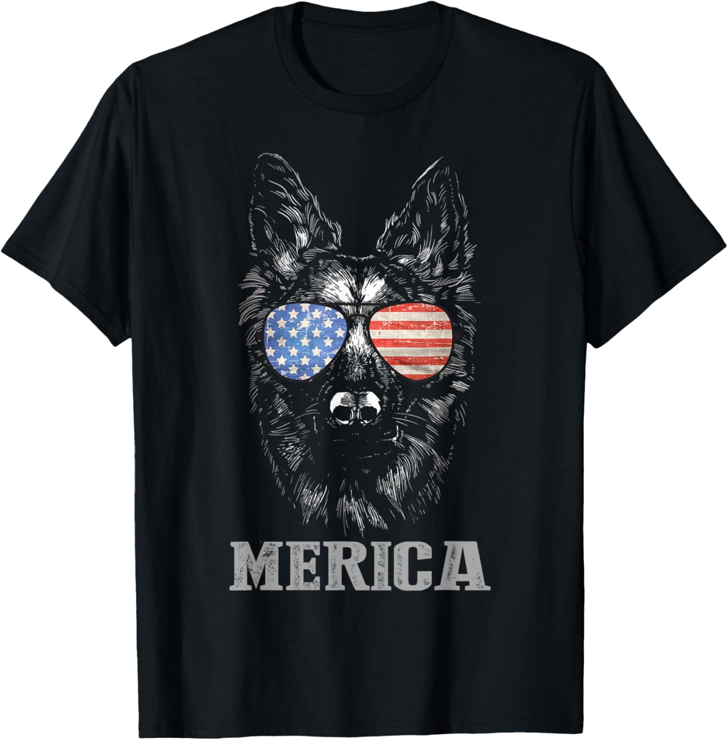 German Shepherd Patriotic Dog Merica 4th of July USA Flag T-Shirt