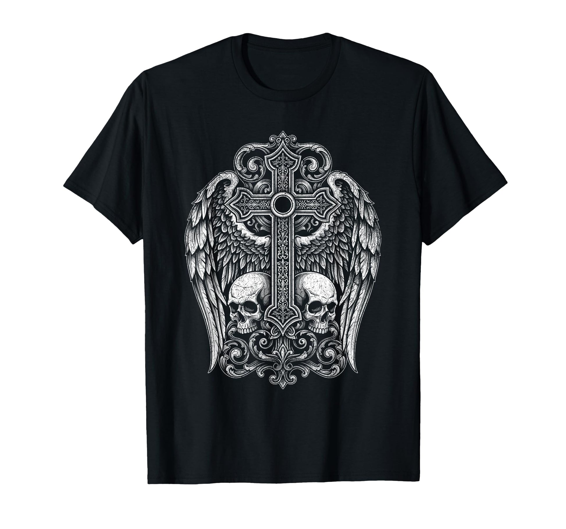 Gothic Cross Skull Wings Grunge Y2K Punk Rock Tattoo T-Shirt