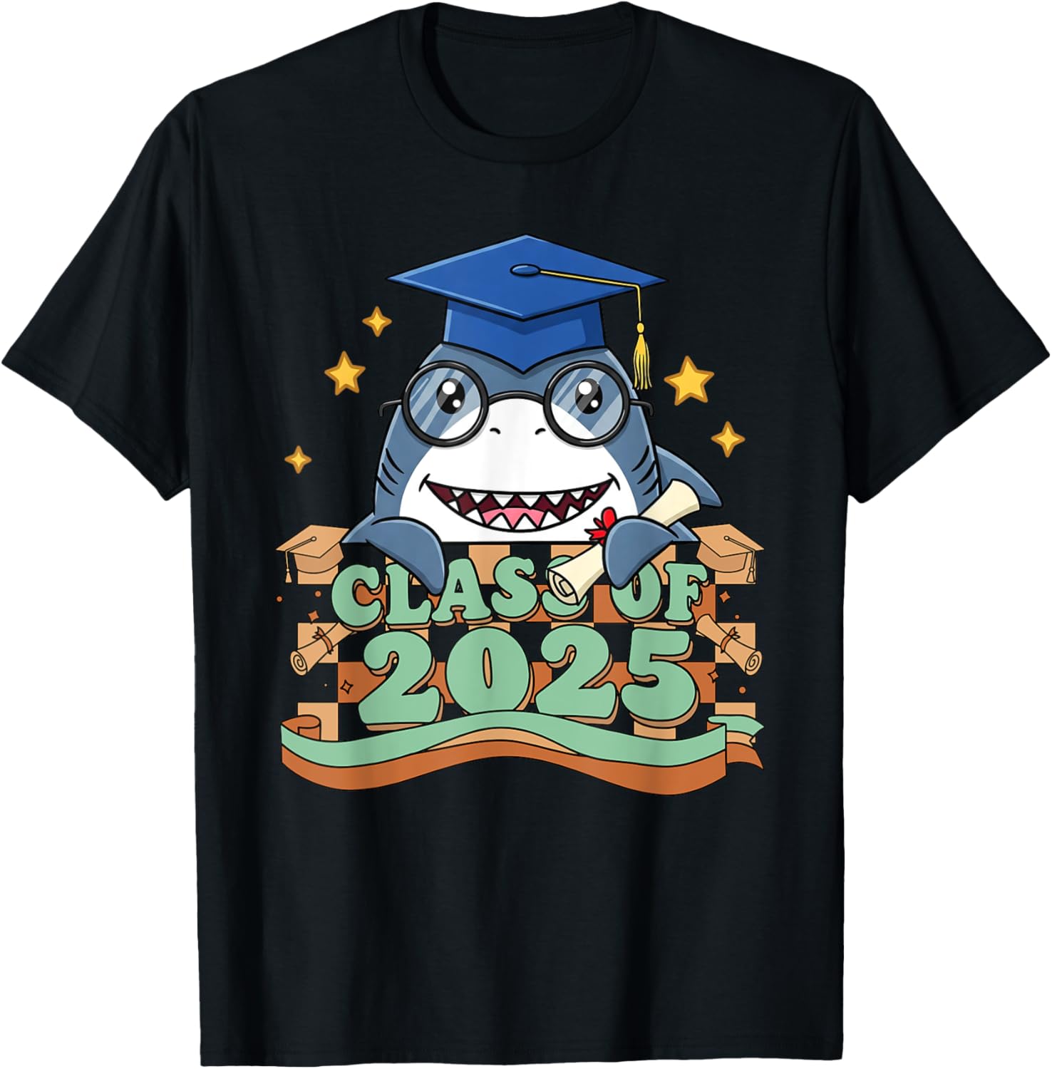 Graduate Shark Class Of 2025 Kids Mens Womens Graduation T-Shirt