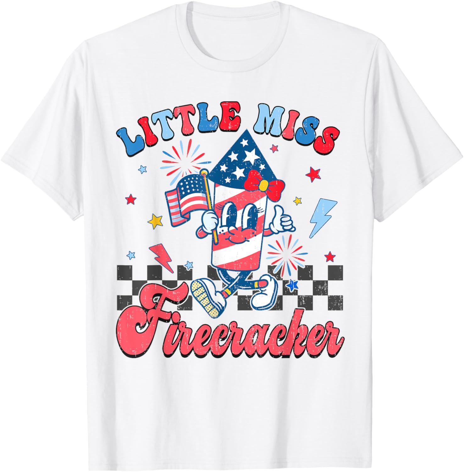 Groovy Little Firecracker 4th Of July Kids Girl Toddler T-shirt