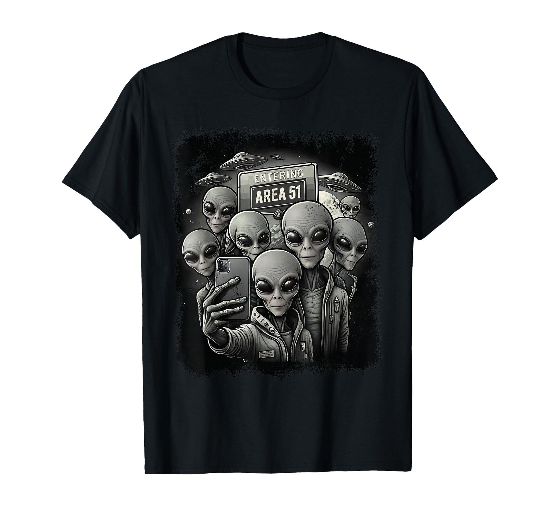 Happy Aliens Selfie Area 51 Funny UFO UAP Extraterrestrial T-Shirt