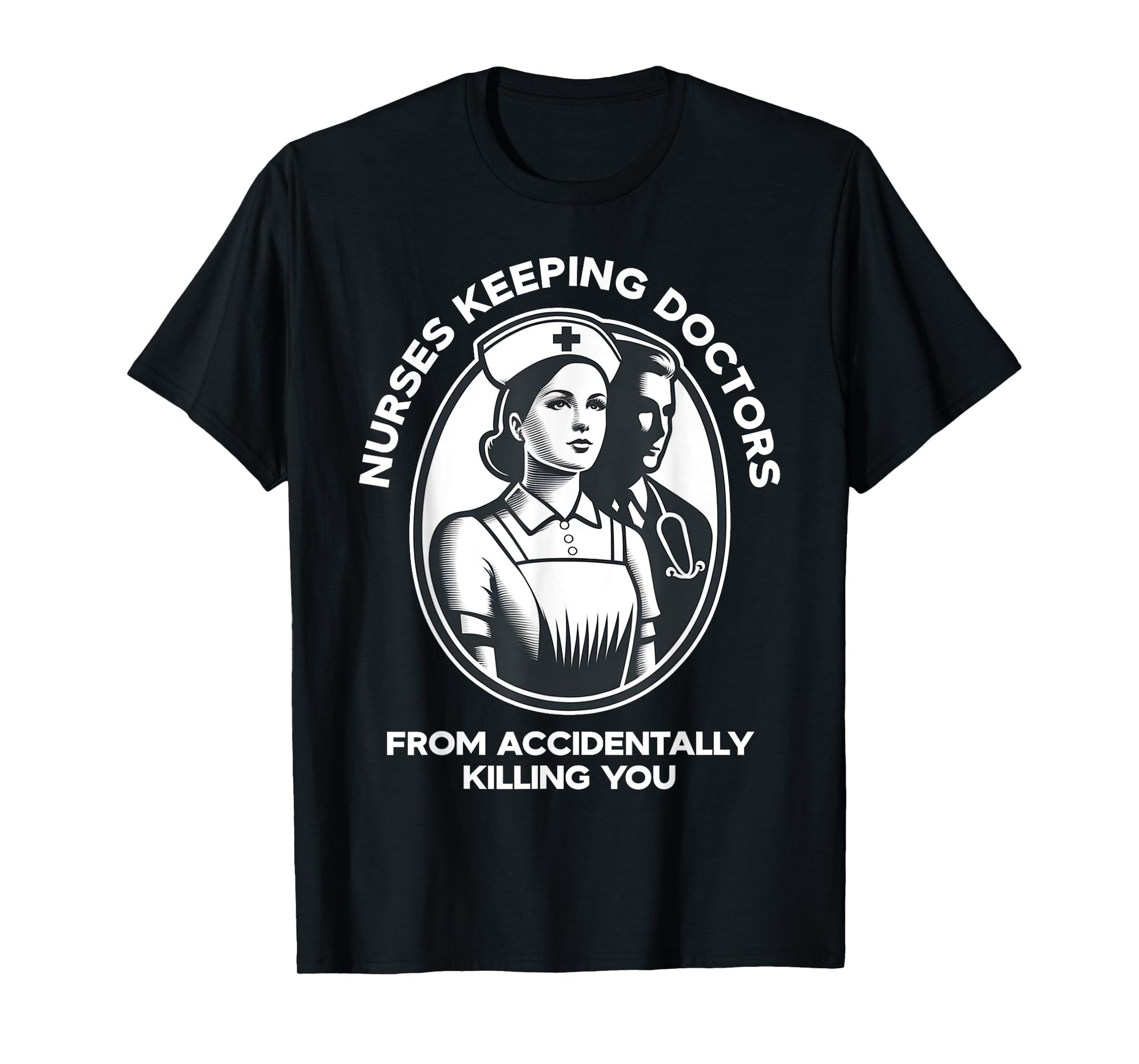 Happy Heart Scrubs Funny Nurse Keeping Doctors From Accident LPN RN CNA Nursing T-Shirt - Unisex Adult - Black - Small - Short Sleeve - T-Shirt