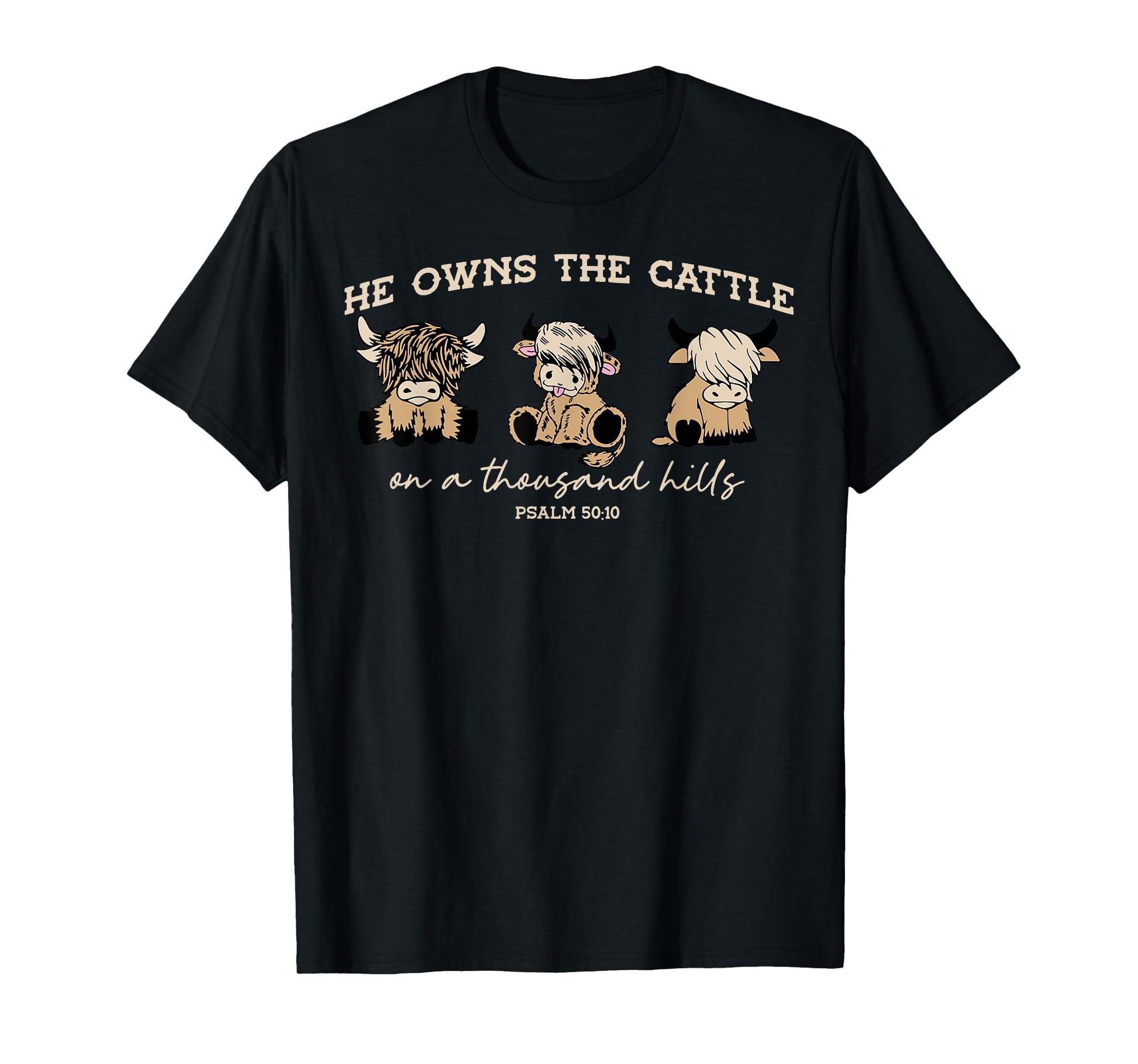 He Owns The Cattle On A Thousand Hills Funny Highland cow T-Shirt