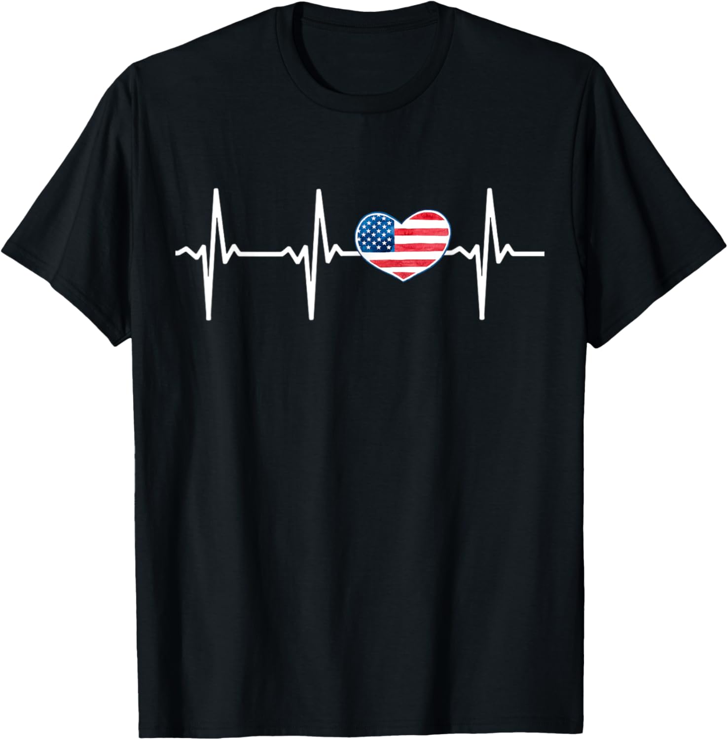 Heartbeat EKG America Heart Love Patriotic 4th of July T-Shirt