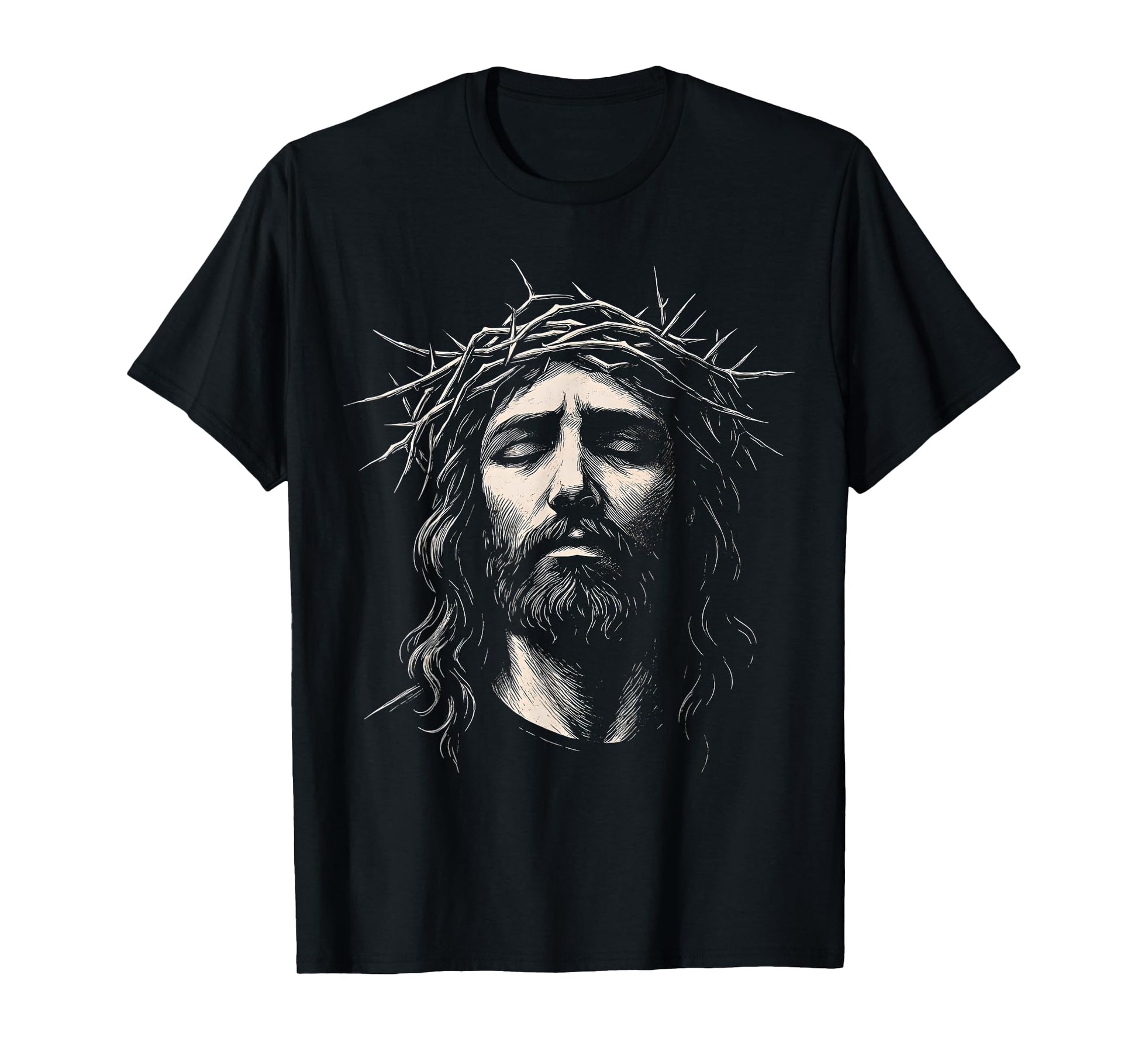 HUGvyn Jesus Christian Face Crown of Thorns Religious Faith T-Shirt