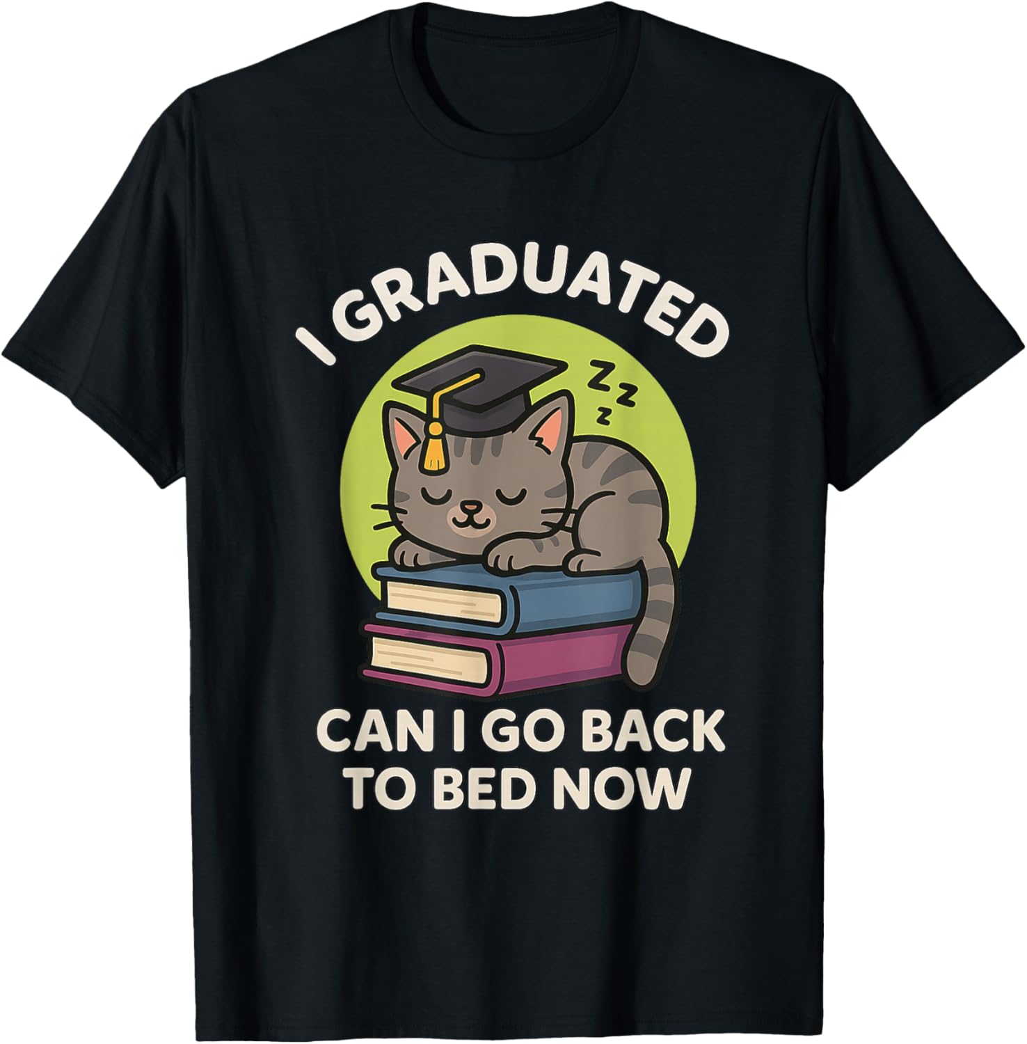 I Graduated Can I Go Back To Bed Now Funny Cat Graduation T-Shirt