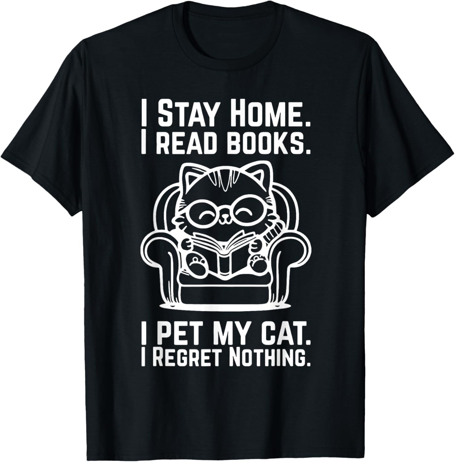 I Stay Home I Read Books I Pet My Cat I Regret Nothing T-Shirt