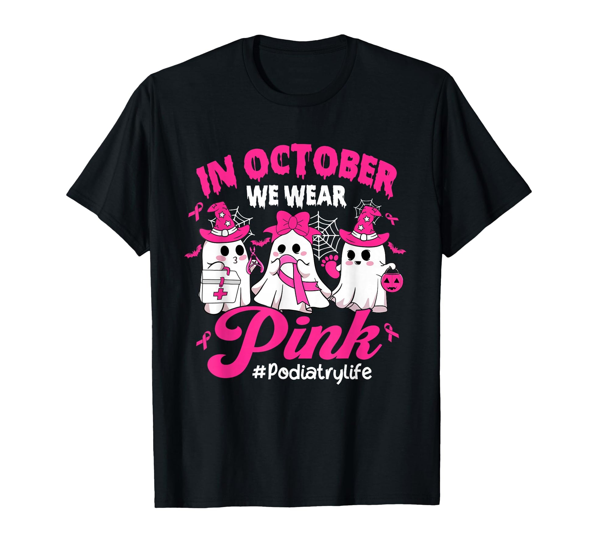 in October We Wear Pink Podiatry Life Breast Cancer T-Shirt