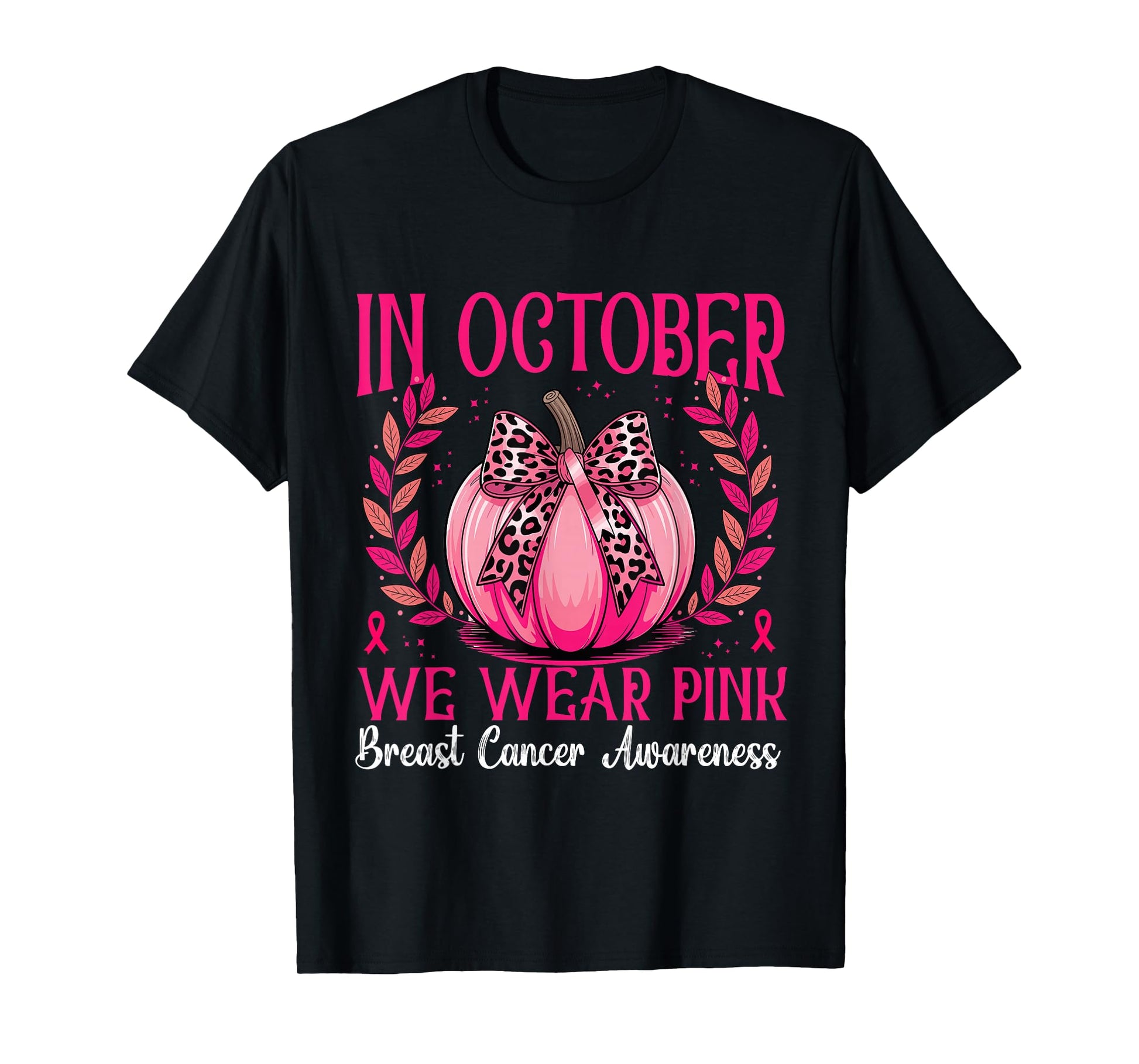 in October We Wear Pink Pumkin Witch Breast Cancer Awareness T-Shirt