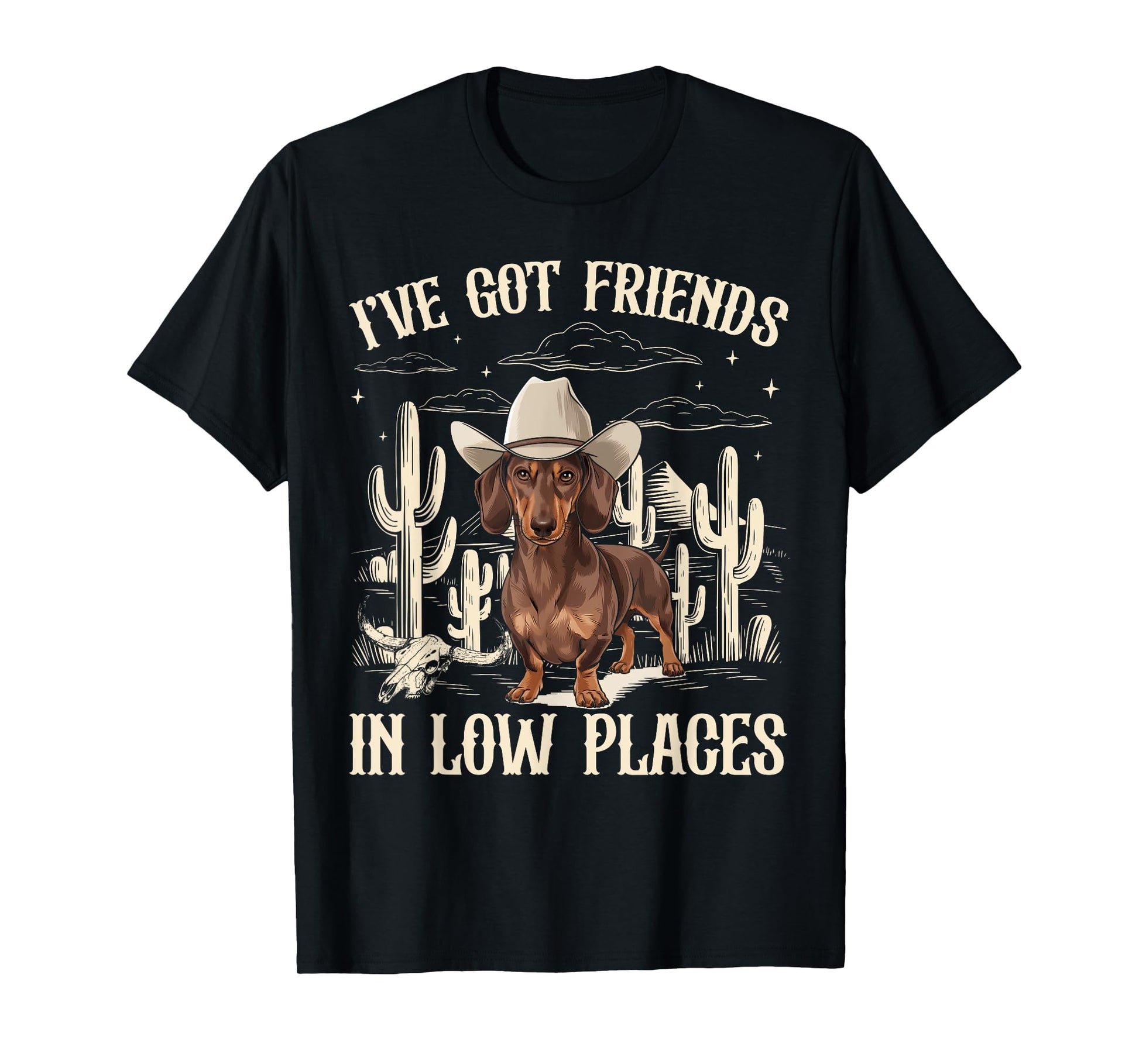 I've Got Friends In Low Places Funny Dachshund Cowboy Doxie T-Shirt