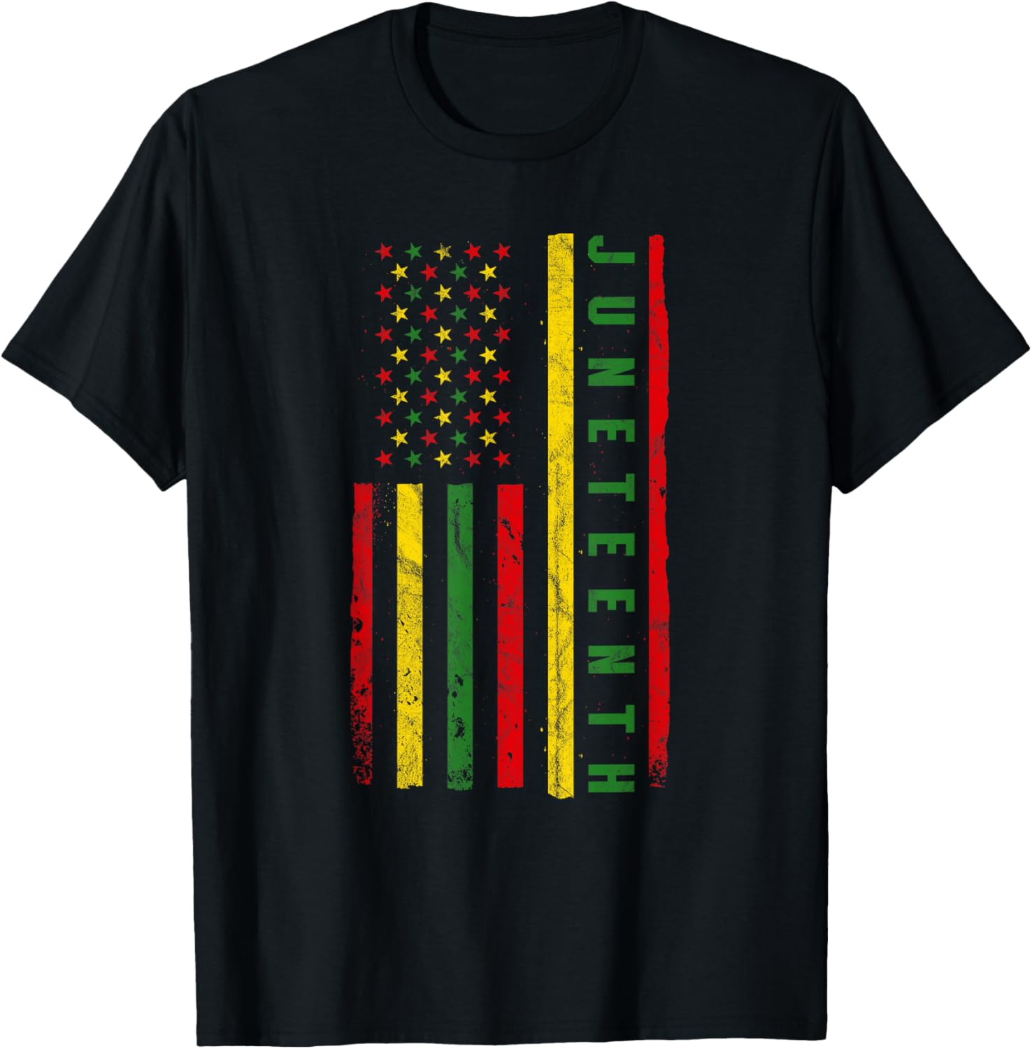 Juneteenth American Flag Emancipation Melanin Black T-Shirt