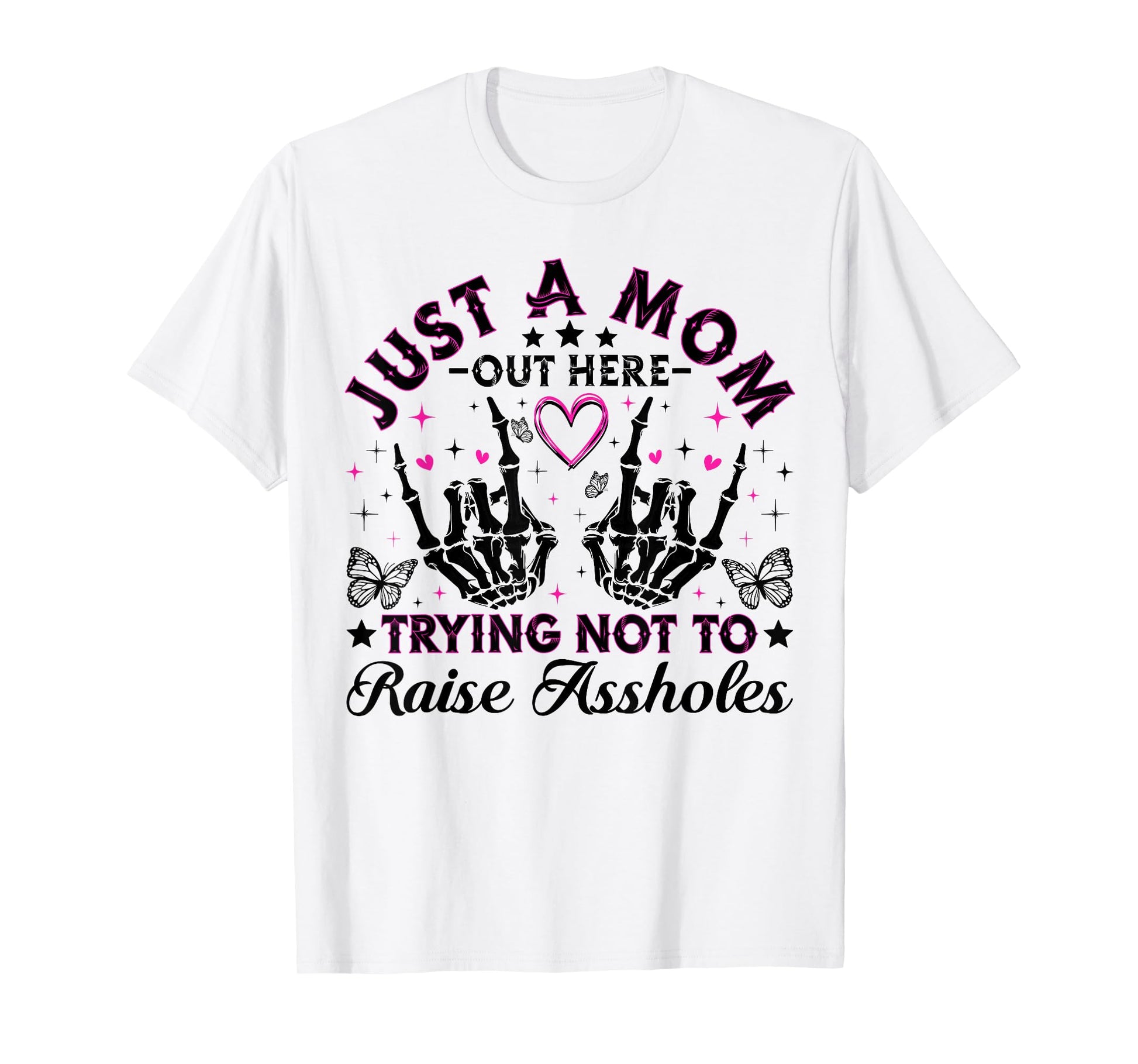 Just A Mom Trying Not To Raise Assholes Funny Mom Skeleton T-Shirt