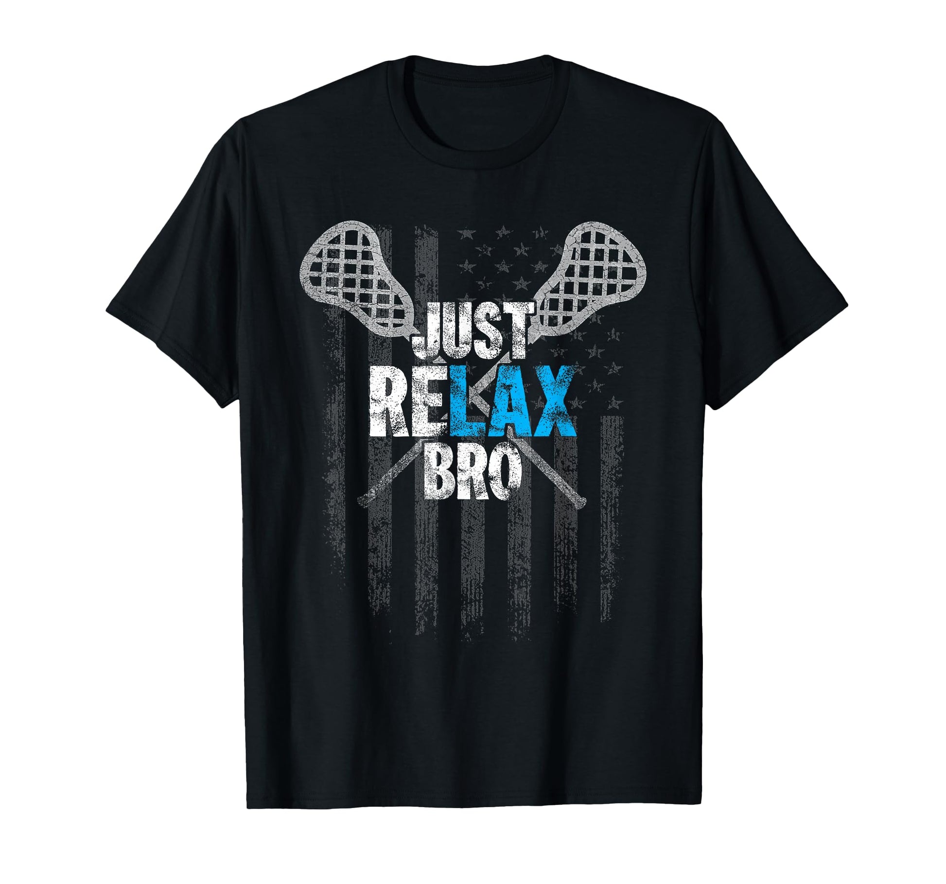 Just Relax Bro Lacrosse Sticks Distressed American Flag T-Shirt