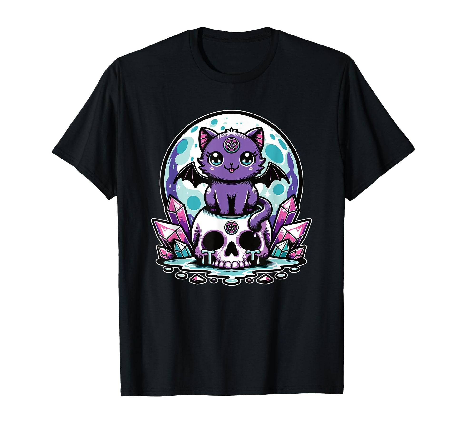 Kawaii Pastel Goth Cute Creepy Cat Bat Skeleton T-Shirt