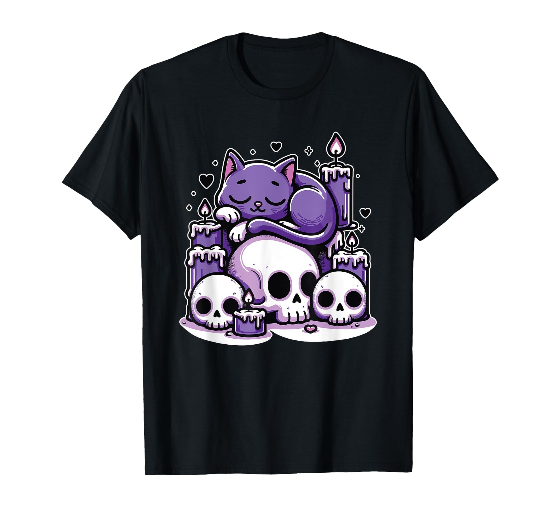 Kawaii Pastel Goth Cute Creepy Cat Candles Skeleton Men Women Girls Kids T-Shirt