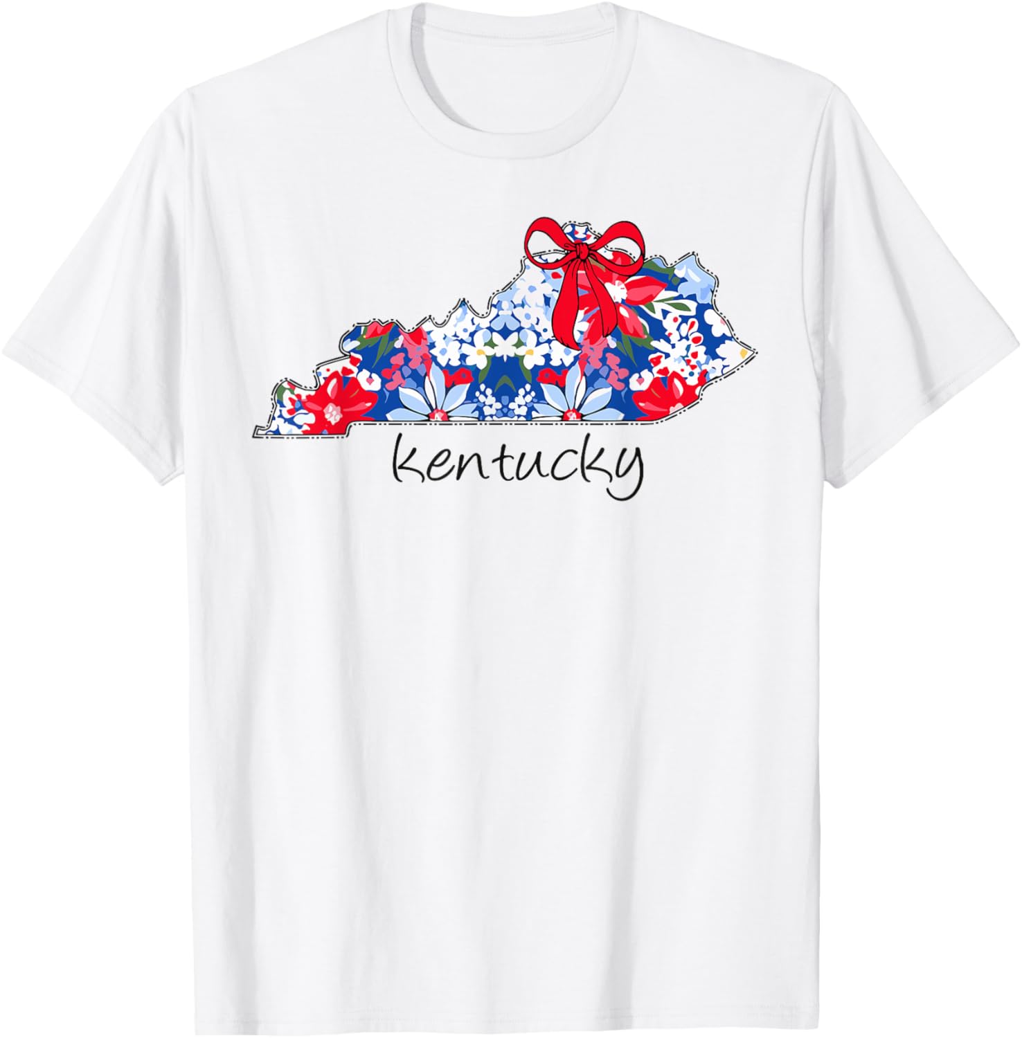 Kentucky Map 4th Of July Red White Blue Bow Patriotic T-shirt