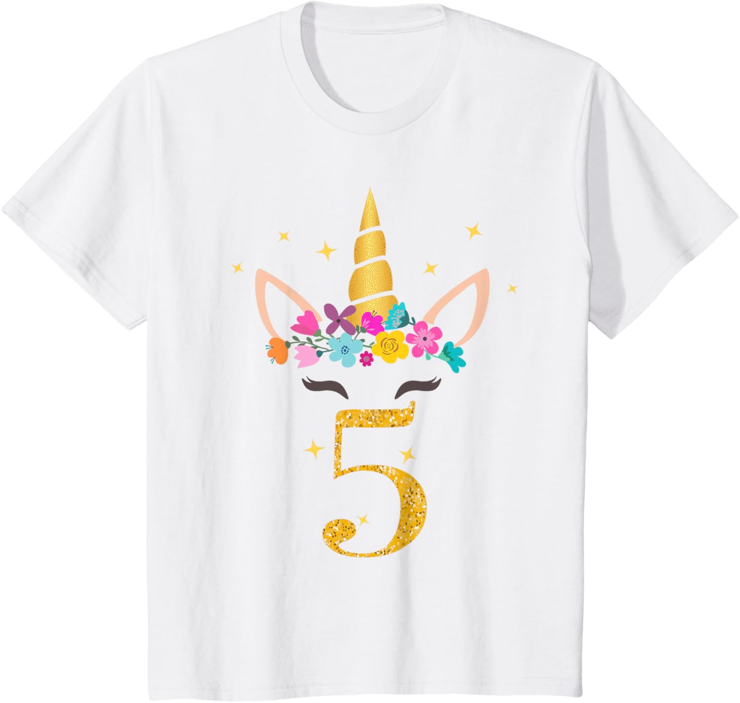 Kids 5th Birthday Unicorn Design for Girls 5-Year-Old T-Shirt